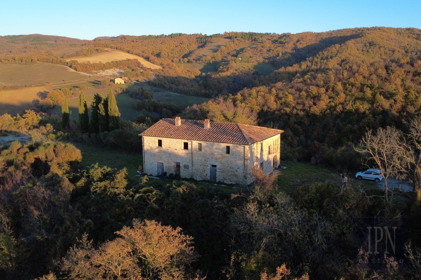 La proprietà comprende una casa colonica principale di 227 mq più una dependance/rovina di 100 mq, situata su un terreno di circa 5 ettari. L'accesso è comodo tramite una strada asfaltata seguita da soli 200 metri di strada bianca, che garantisce sia l'accessibilità che l'isolamento.