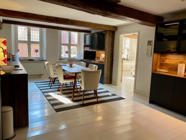 Die Böden sind aus Echtholz, in der Diele finden Sie den original Steinboden.
