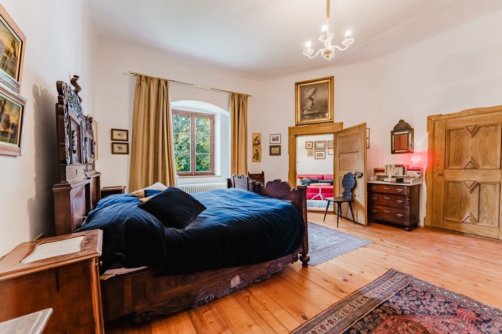 Herrschaftliche Kamine laden zu gemütlichen Stunden in aristokratischer Atmosphäre ein, während die charmante Schlosskapelle zum Hl. Nepomuk – geschmückt mit kunstvollen Rokokoaltären und Werken des Barockmalers Bartolomeo Altomonte (1769) – diesem Anwesen eine spirituelle Note verleiht.