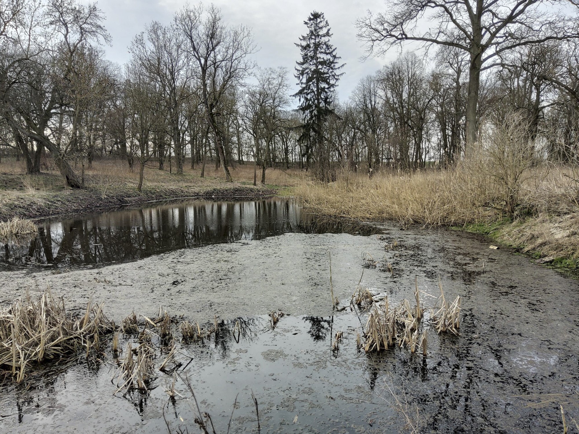 La propriété clôturée s’étend sur environ 5 hectares et comprend un parc de domaine datant de la première moitié du XIXᵉ siècle, avec arbres anciens, deux étangs et un petit ruisseau. Un cimetière familial se trouve dans le parc.
