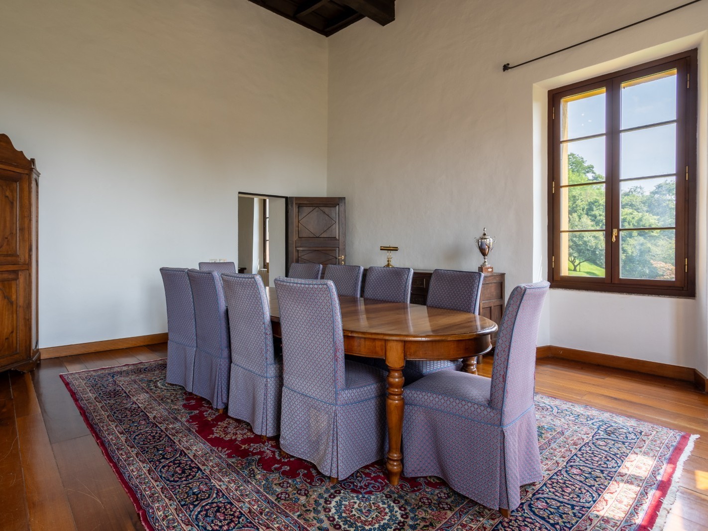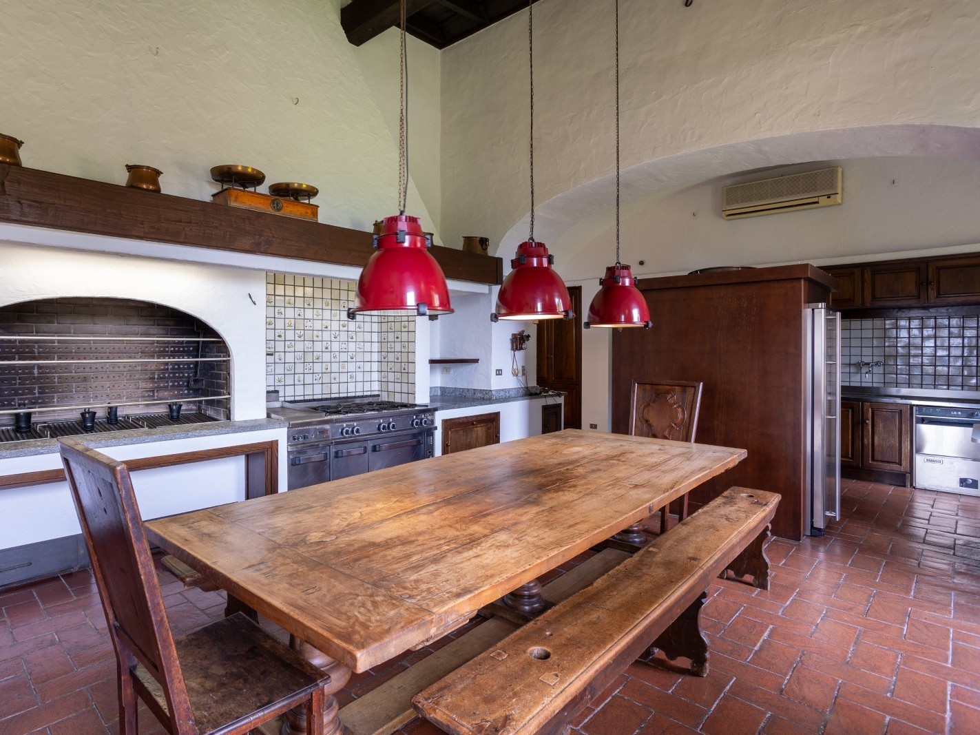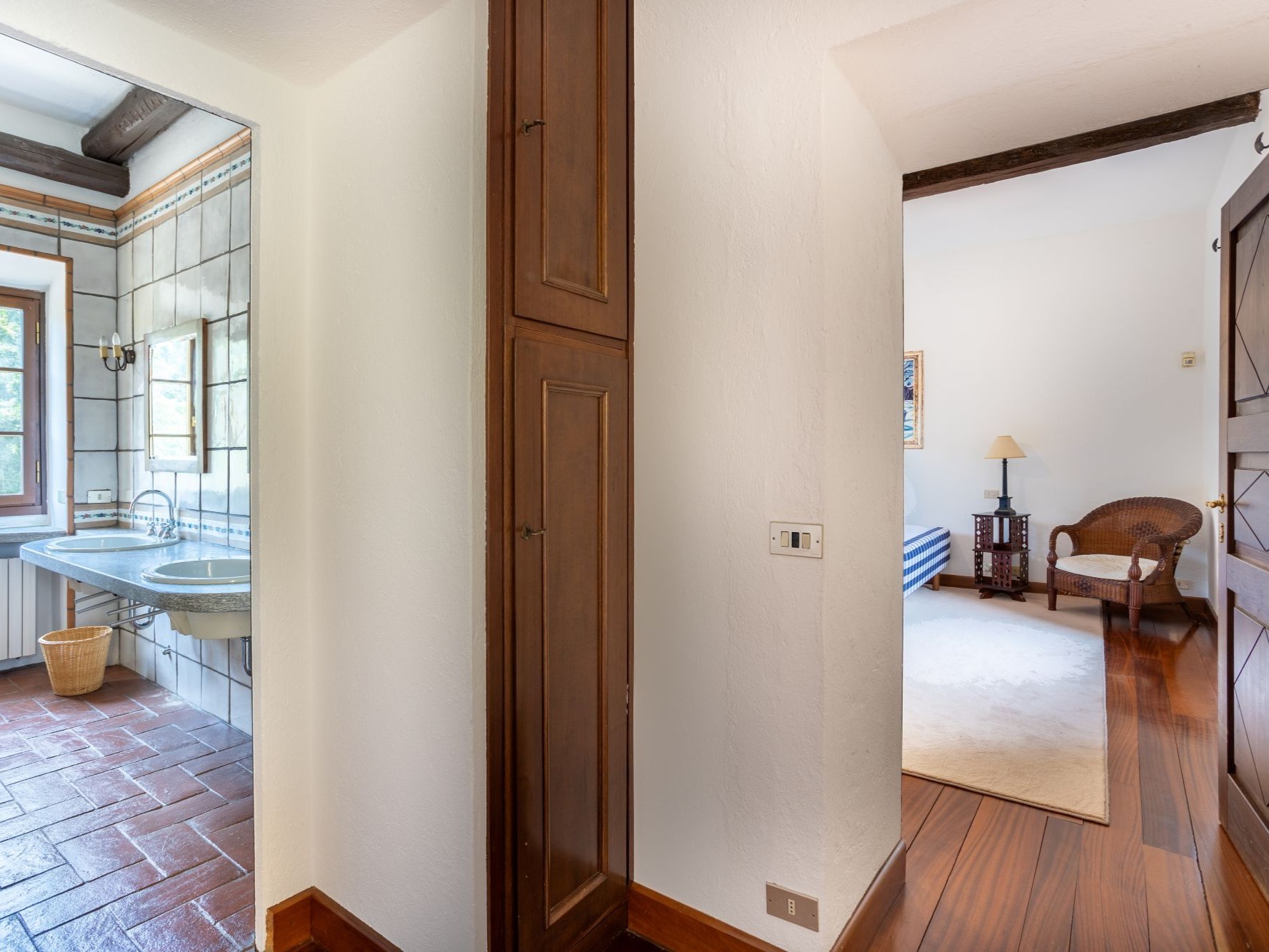 Les intérieurs comprennent de vastes salons dotés de cheminées monumentales, de sols en terre cuite et de poutres apparentes, offrant une atmosphère chaleureuse et élégante. Les huit chambres, toutes avec salle de bains, offrent des espaces lumineux où le confort moderne se combine avec des éléments historiques.