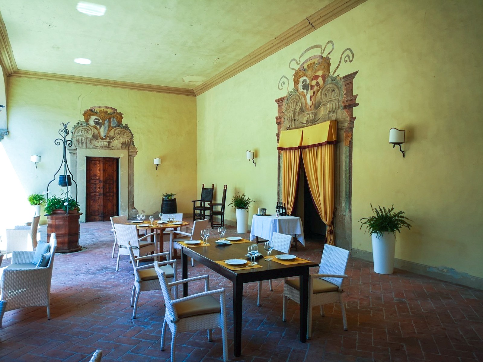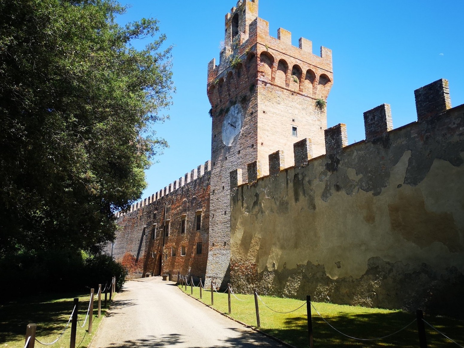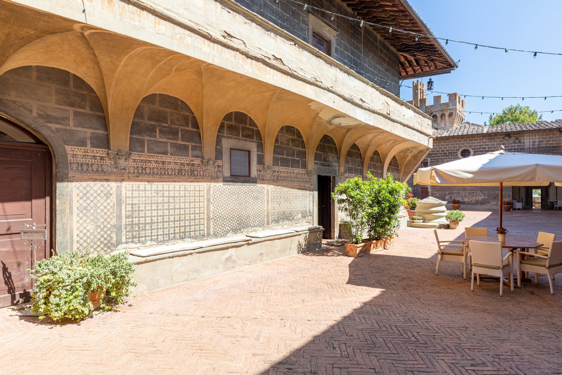 La fortification d’origine a été transformée au fil des siècles en un élégant château résidentiel, tout en préservant ses tours, remparts et chemins défensifs périphériques, aujourd’hui accessibles et offrant des vues panoramiques sur la campagne toscane.