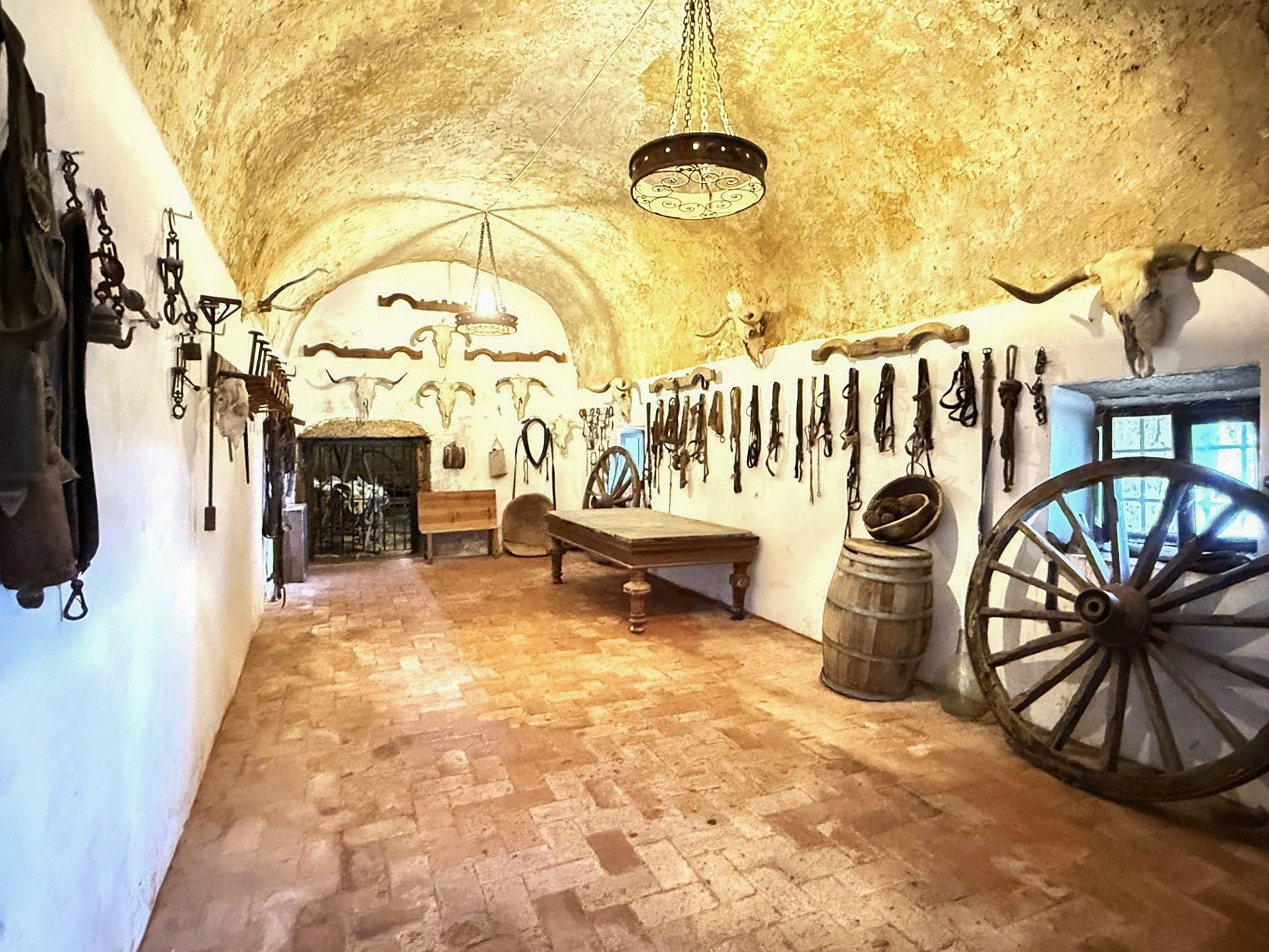 L’architecture comprend des tours défensives, une grande cour avec galerie, plusieurs vastes salles ainsi qu’une chapelle. Le terrain environnant est classé domaine de chasse privé, offrant des paysages préservés, une biodiversité riche et un haut degré d’intimité.