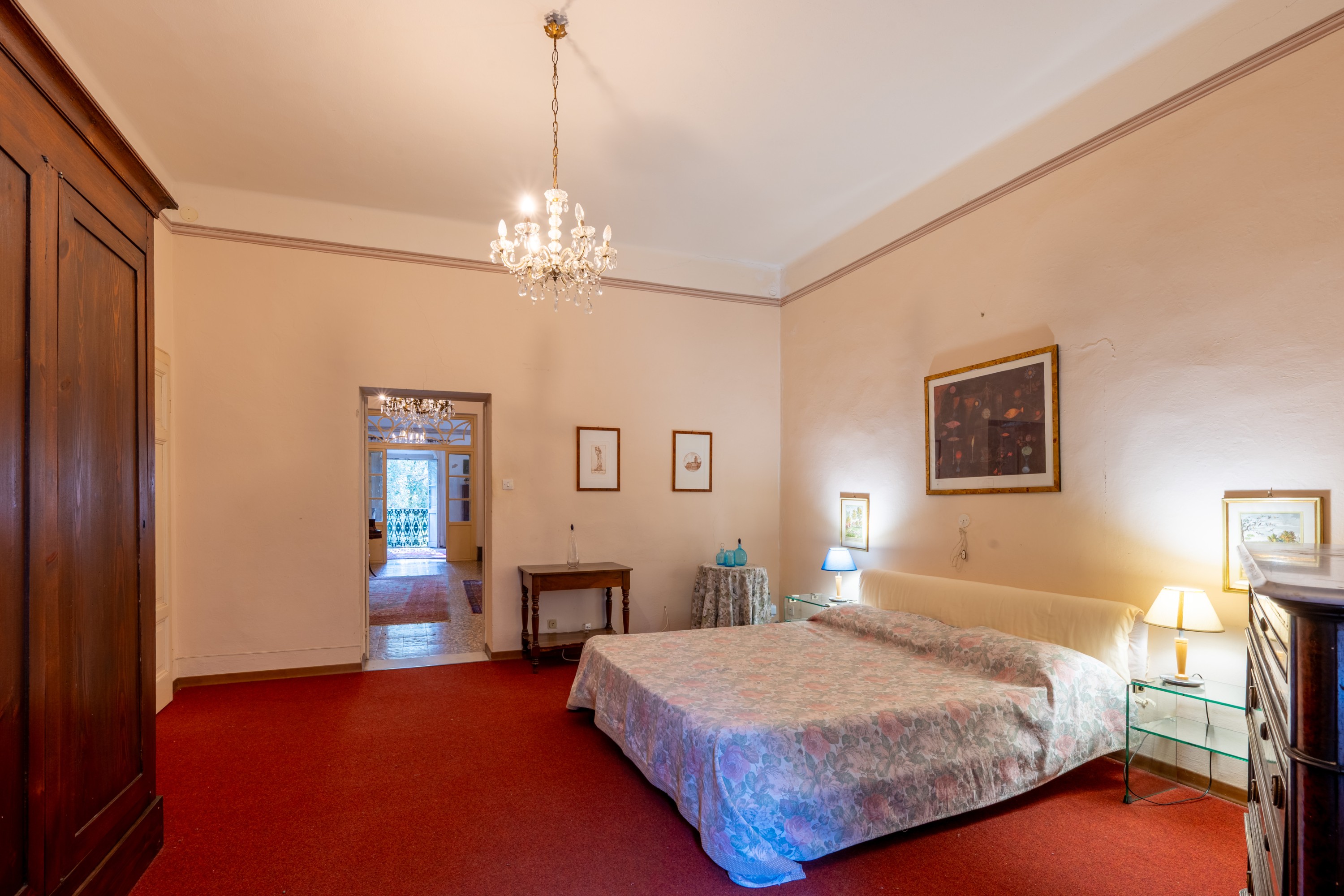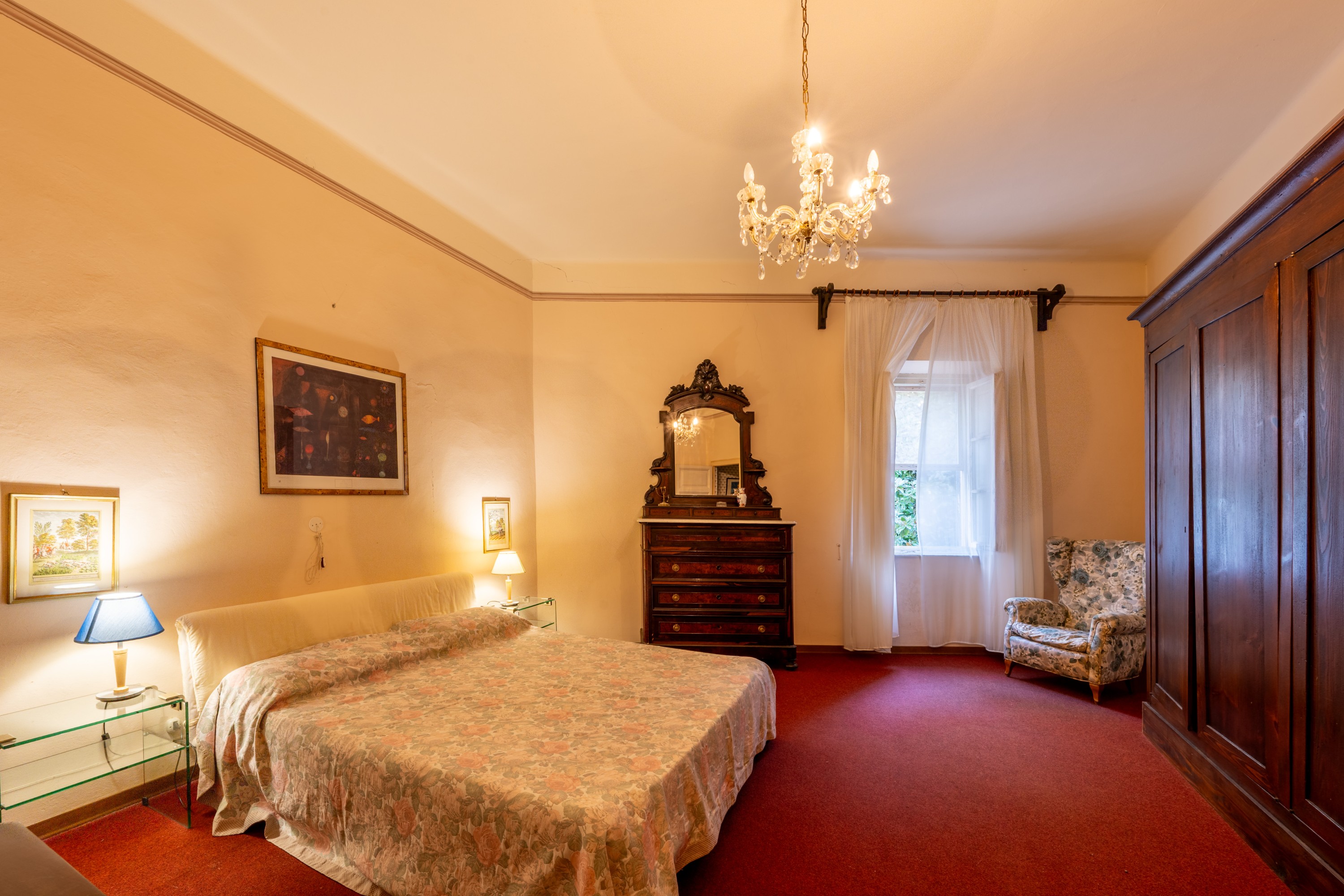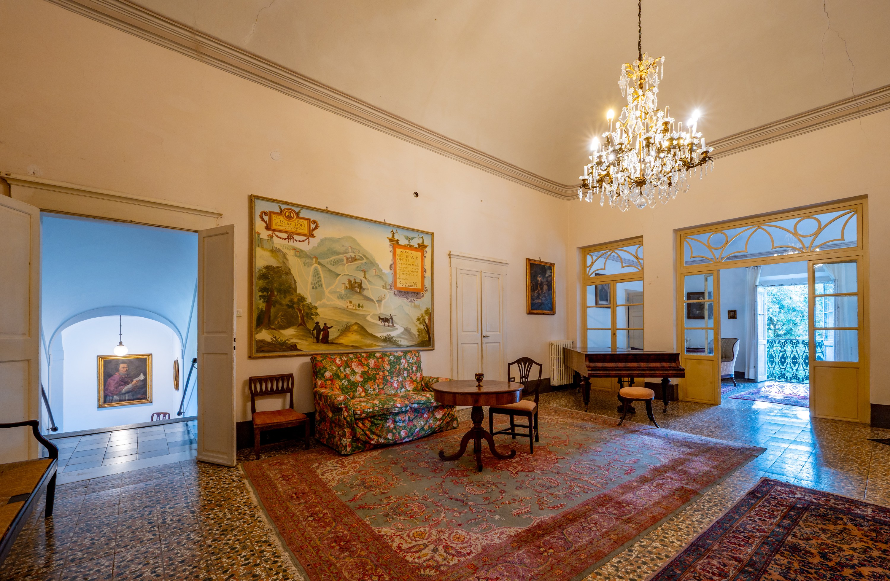 Salendo al primo piano si trova un maestoso salone di rappresentanza con arazzo storico, un secondo salotto di disimpegno e cinque camere da letto, di cui quattro matrimoniali con bagno en suite, oltre a una camera singola e un ulteriore bagno. Spazi perfetti per un’accoglienza raffinata e riservata.