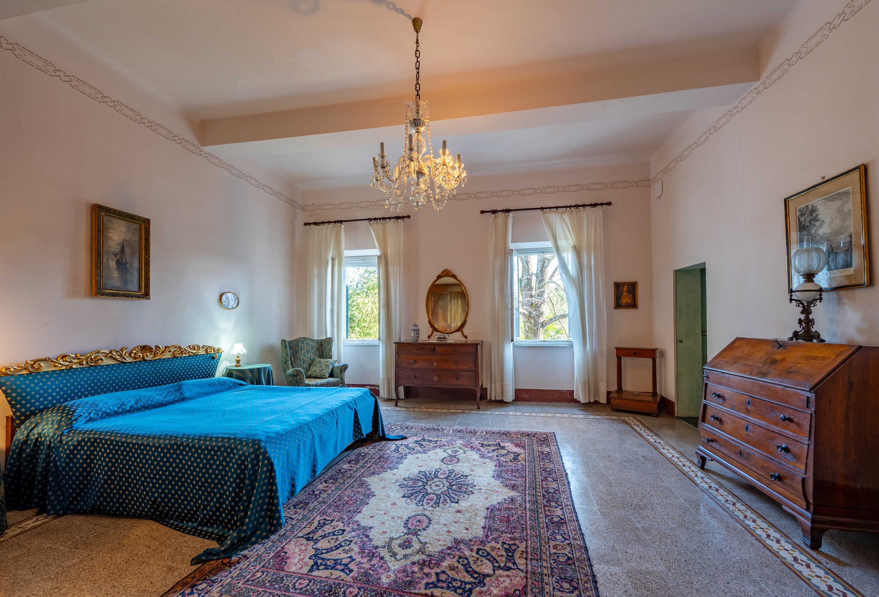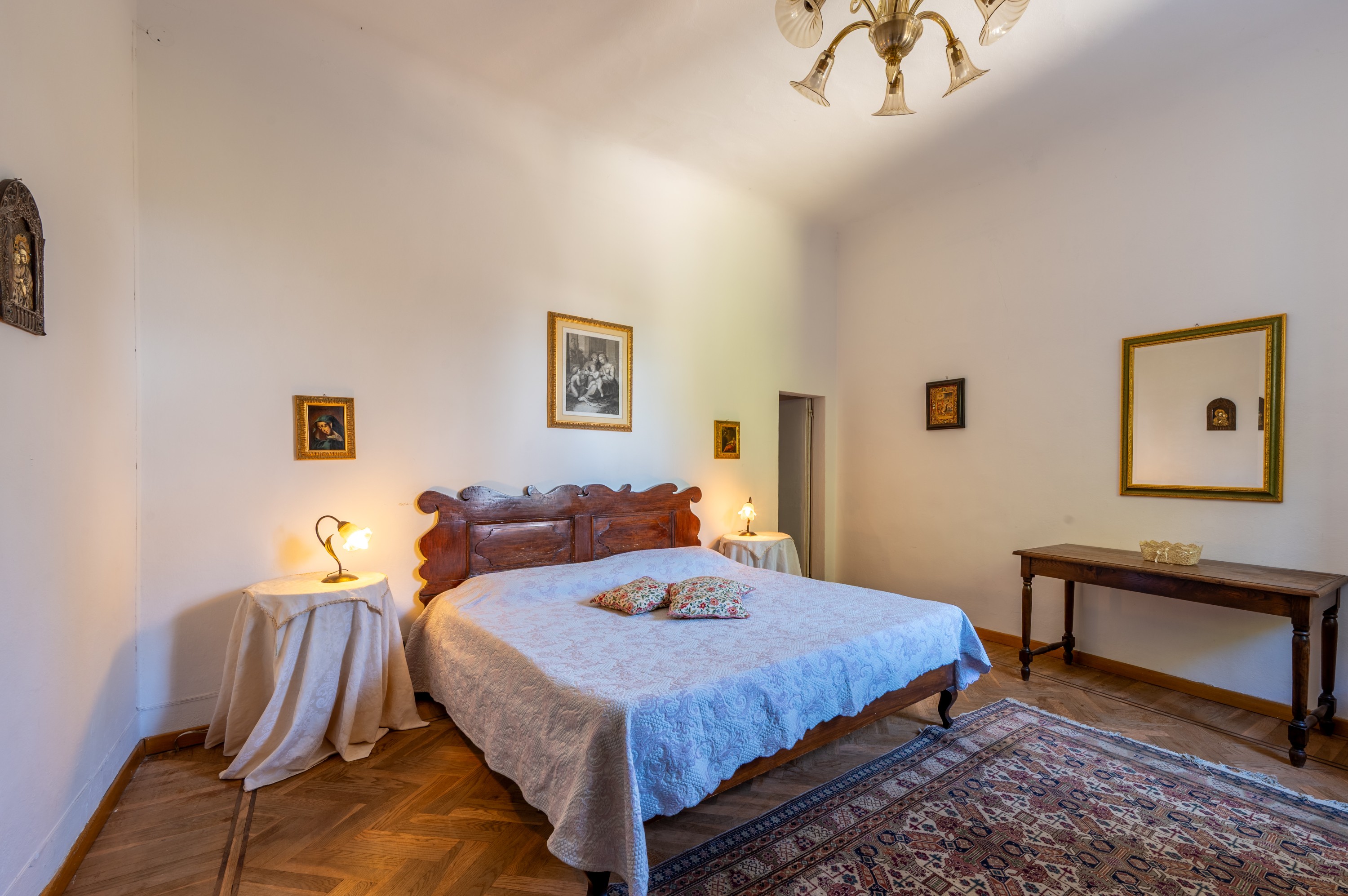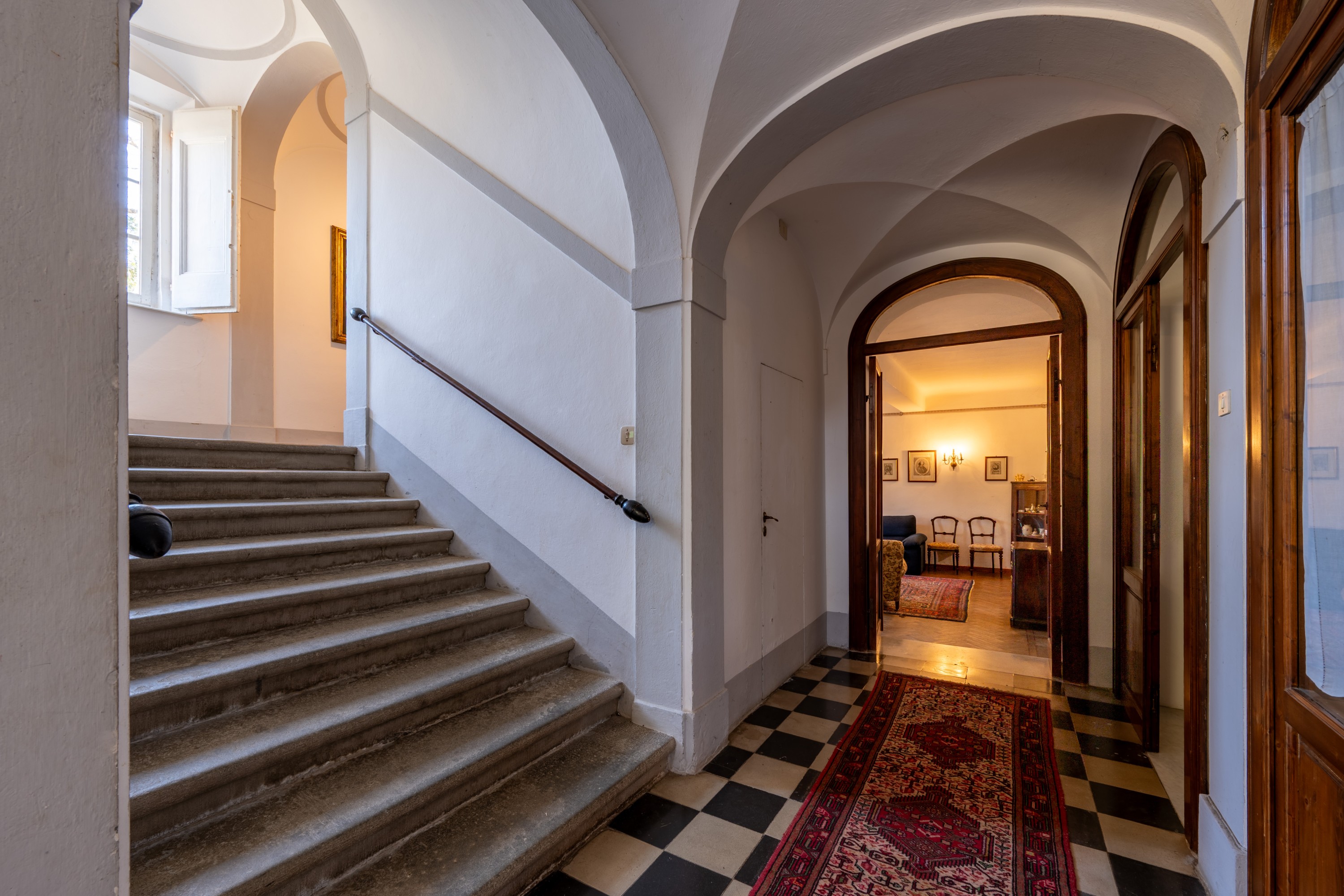 Salendo al primo piano si trova un maestoso salone di rappresentanza con arazzo storico, un secondo salotto di disimpegno e cinque camere da letto, di cui quattro matrimoniali con bagno en suite, oltre a una camera singola e un ulteriore bagno. Spazi perfetti per un’accoglienza raffinata e riservata.