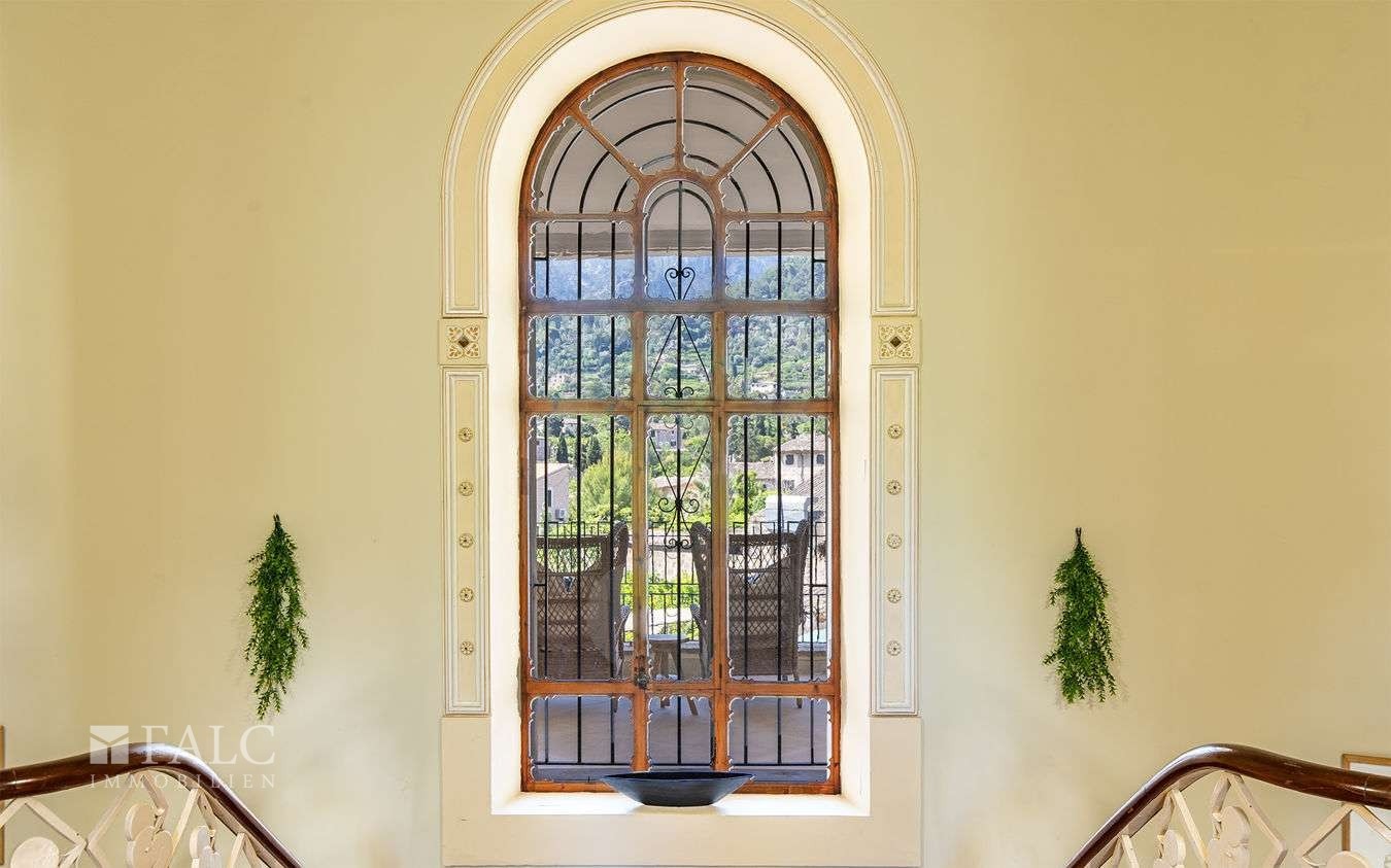 Das Dorf liegt eingebettet zwischen den Gipfeln der Tramuntana und terrassierten Zitrusplantagen. Restaurants, Boutiquen, Wochenmarkt. Der Supermarkt ist zu Fuß erreichbar, ebenso der Bahnhof mit seiner Verbindung nach Palma.