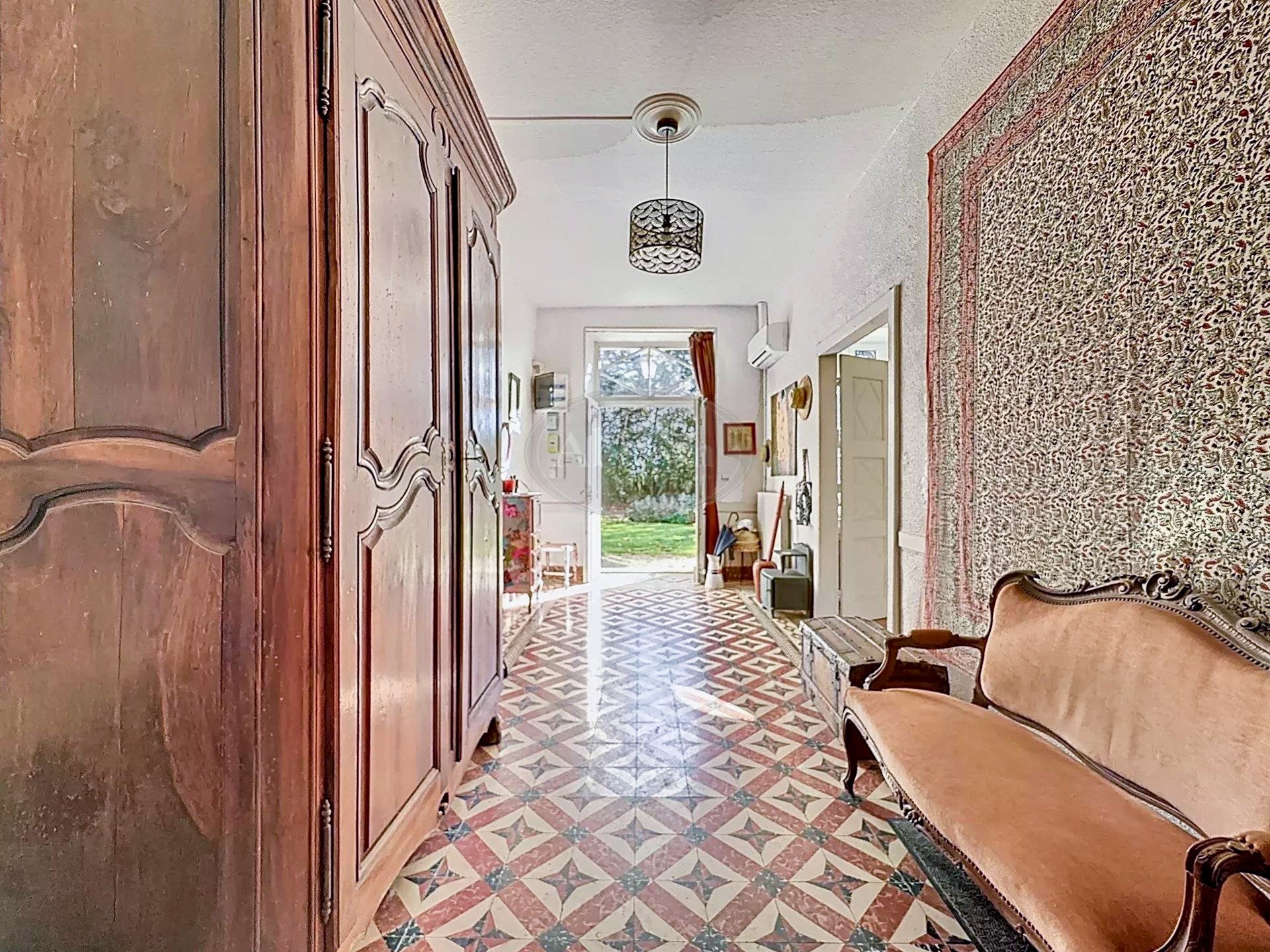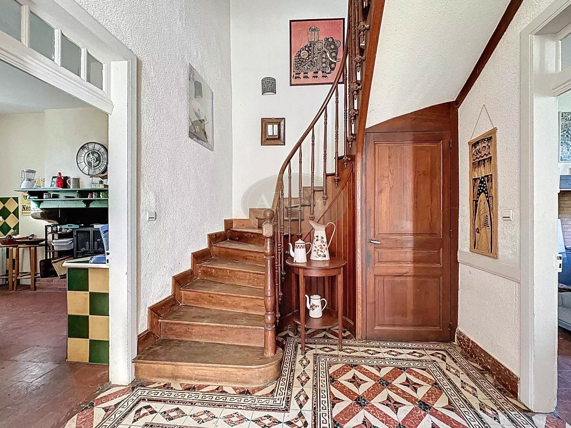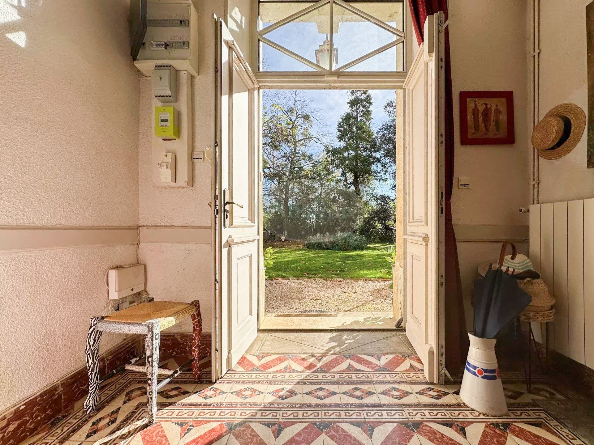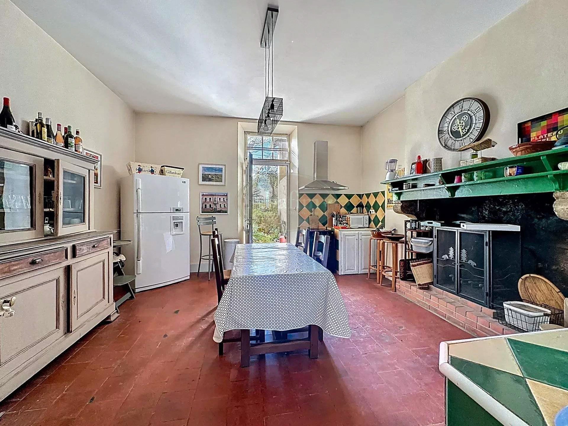 Pierres de taille, carreaux de ciment, hauts plafonds et grandes cheminées caractérisent cette maison de maître.