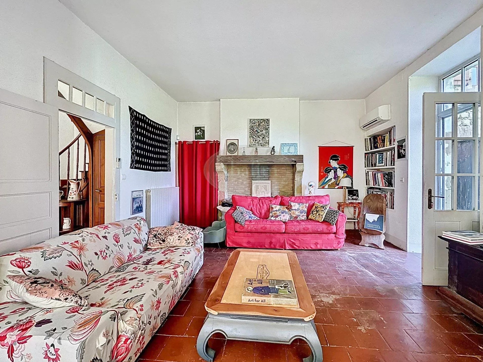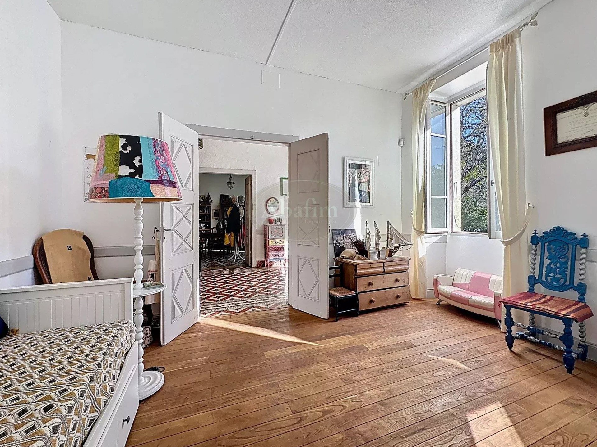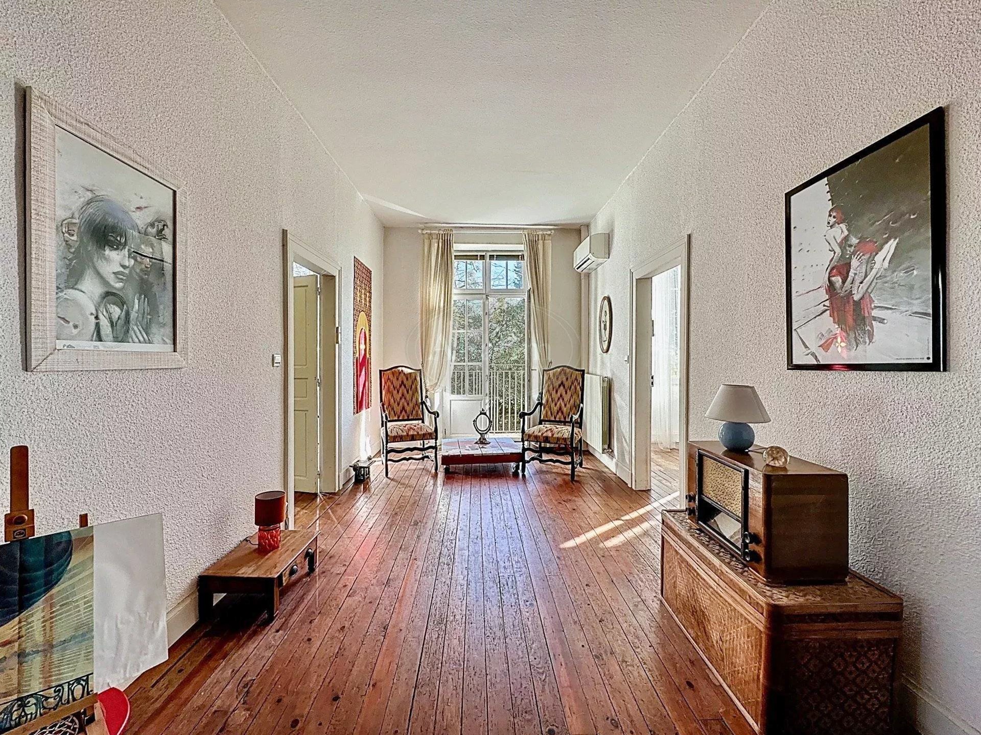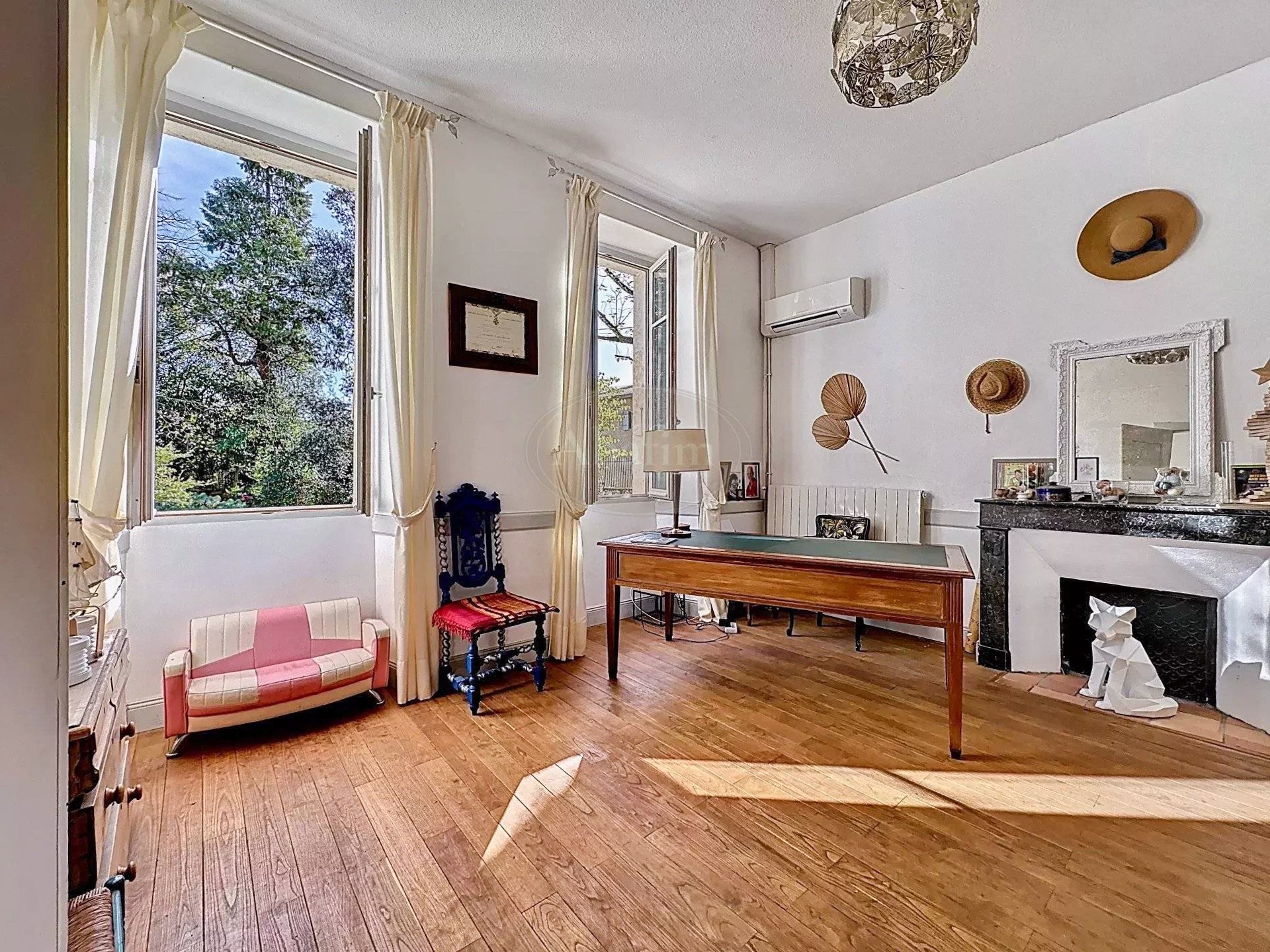 Pierres de taille, carreaux de ciment, hauts plafonds et grandes cheminées caractérisent cette maison de maître.
