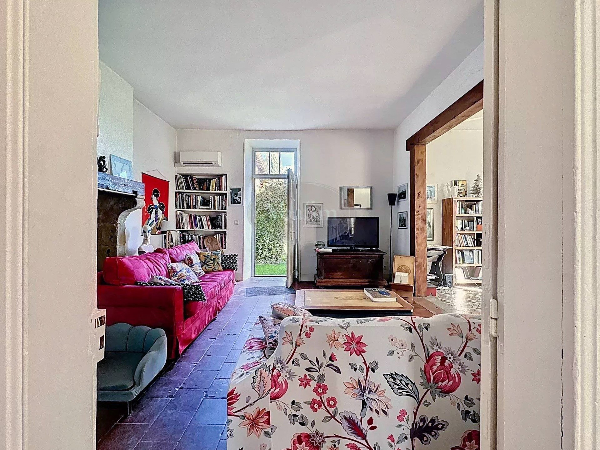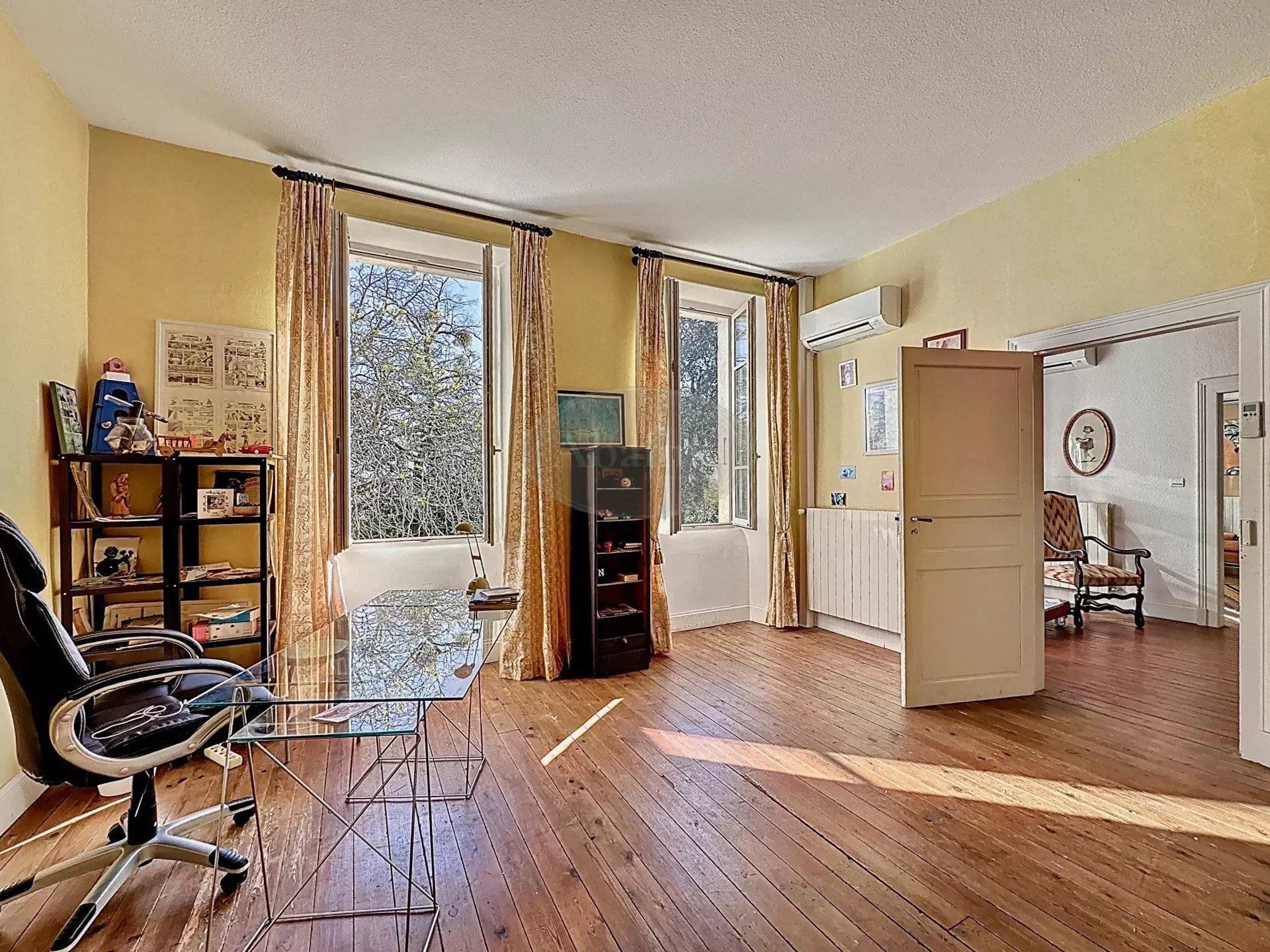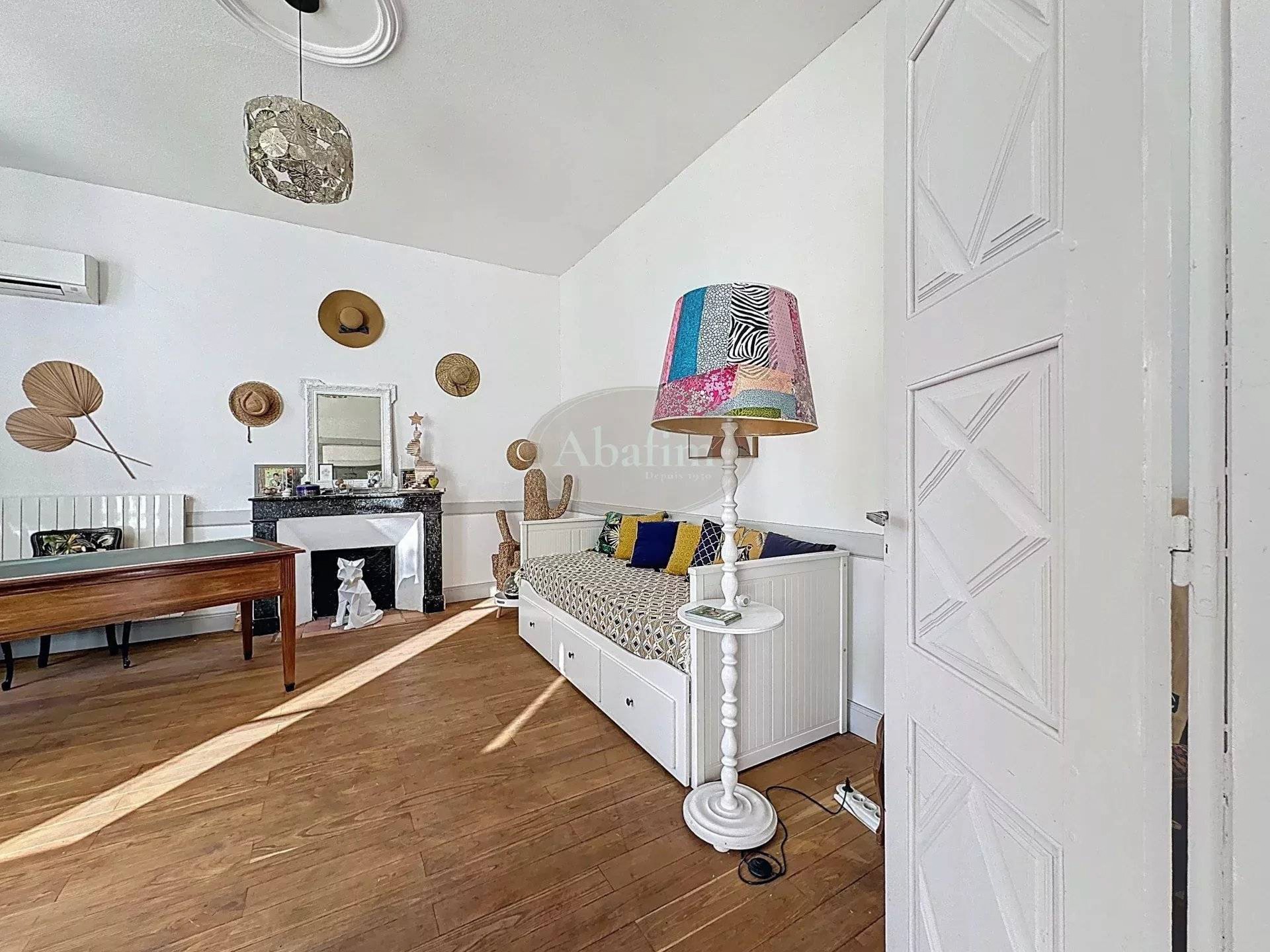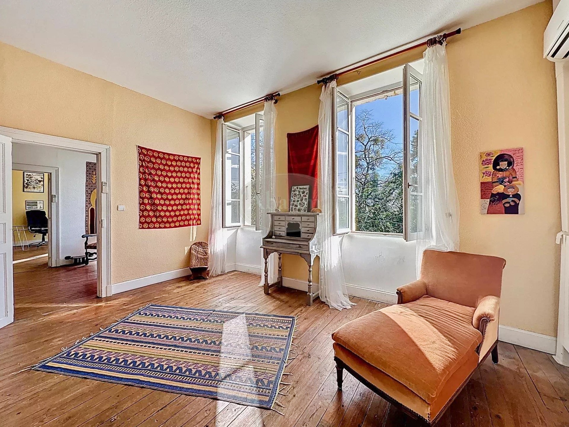 Pierres de taille, carreaux de ciment, hauts plafonds et grandes cheminées caractérisent cette maison de maître.