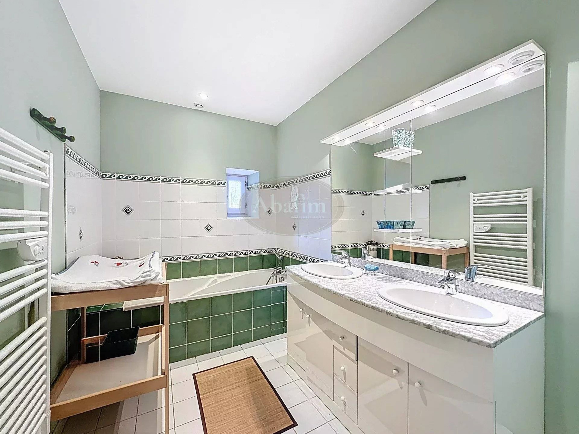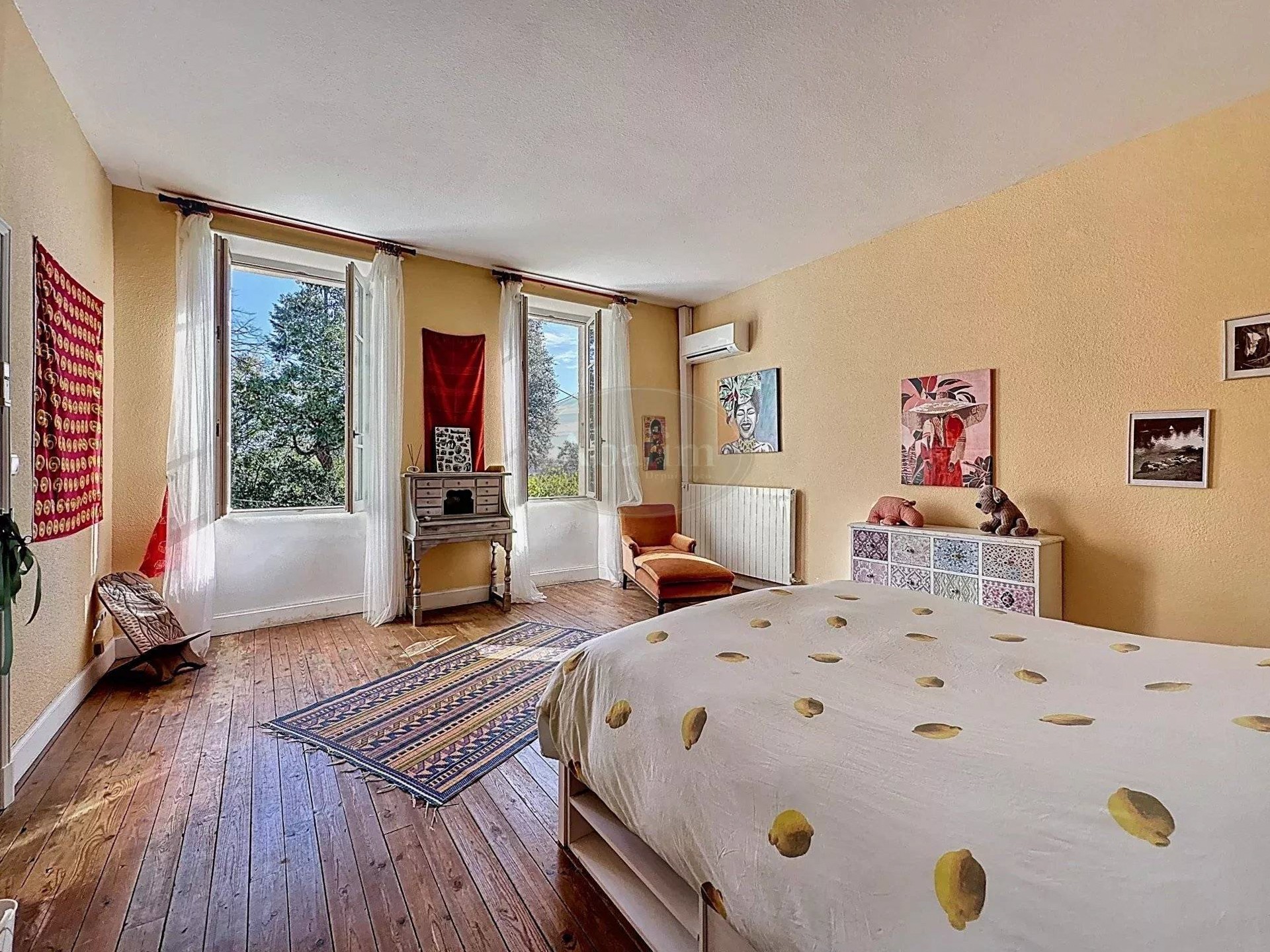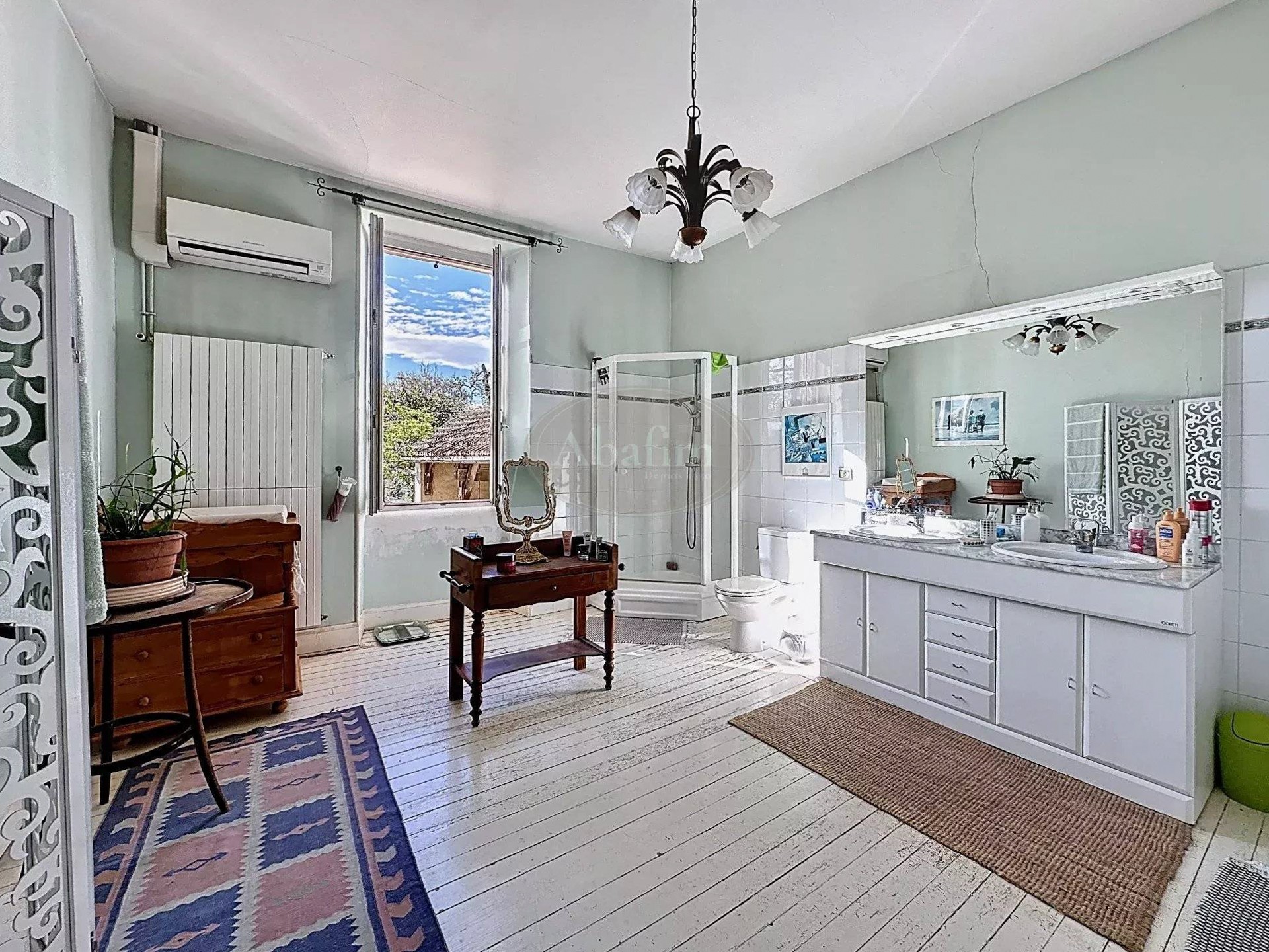 La maison est équipée de climatiseurs réversibles et d’un chauffage central au fioul. Toutes les fenêtres sont à double vitrage.