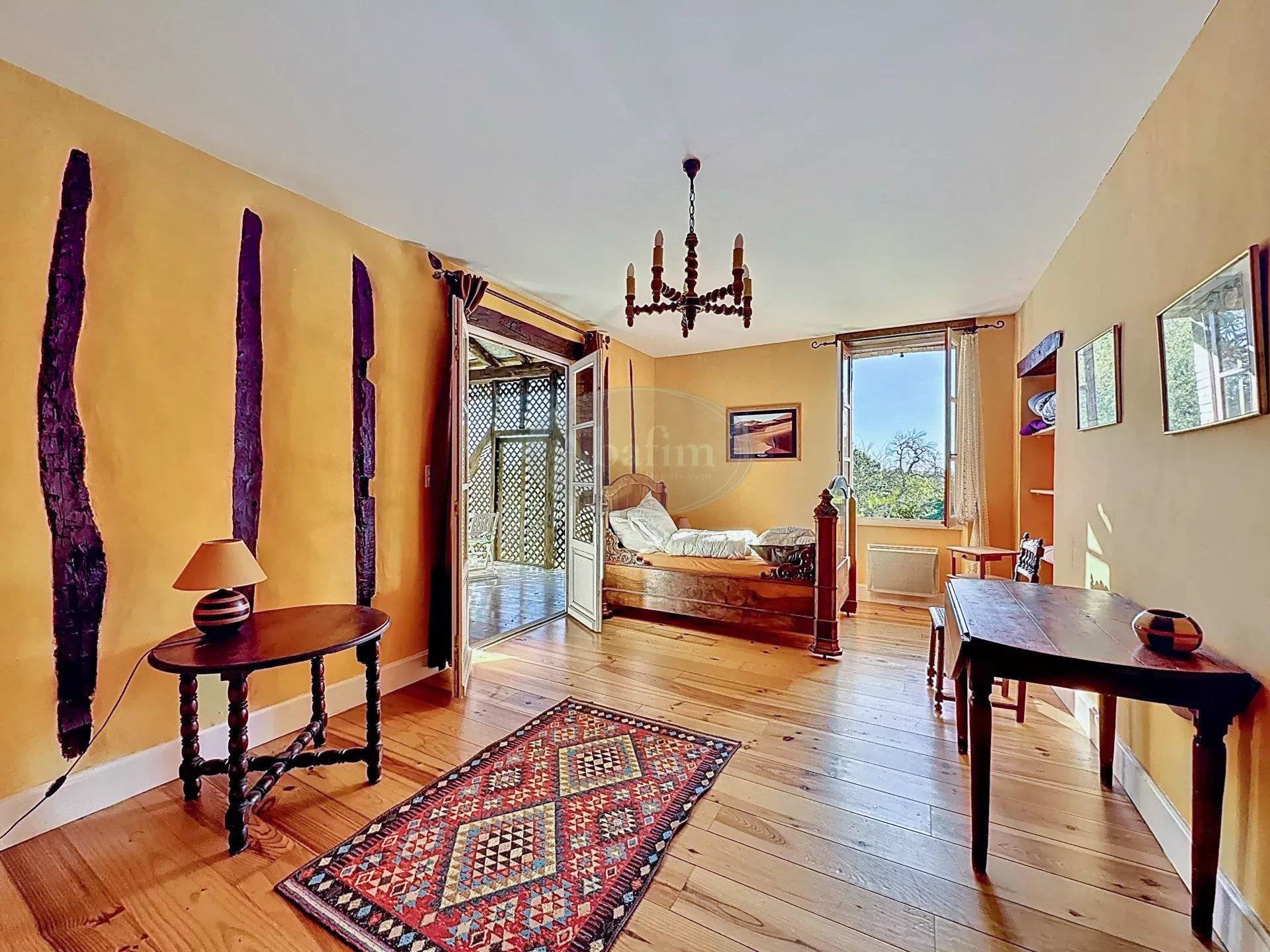 Située entre Masseube et Castelnau-Magnoac, cette belle propriété de plus de 350 m² habitables, avec son gîte, offre six chambres sur un terrain de 1,3 hectare.