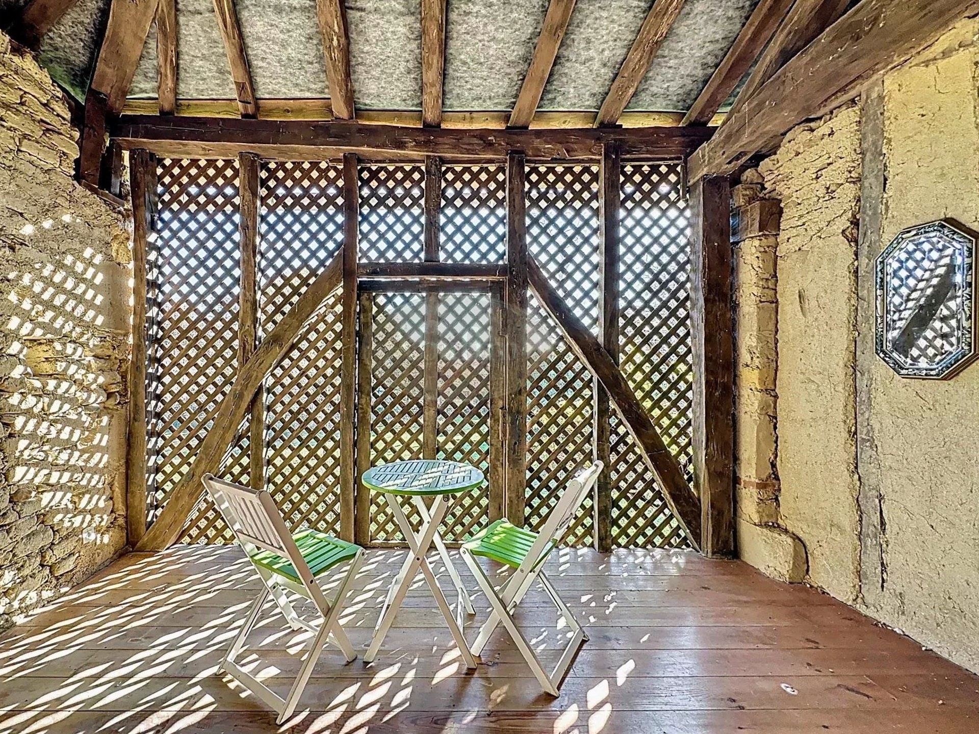 La propriété comprend également un grand grenier de 45 m² et une grange attenante. Le parc, piscinable, comprend un kiosque, un emplacement pour un potager, un puits, une mare et un abri pour deux chevaux.