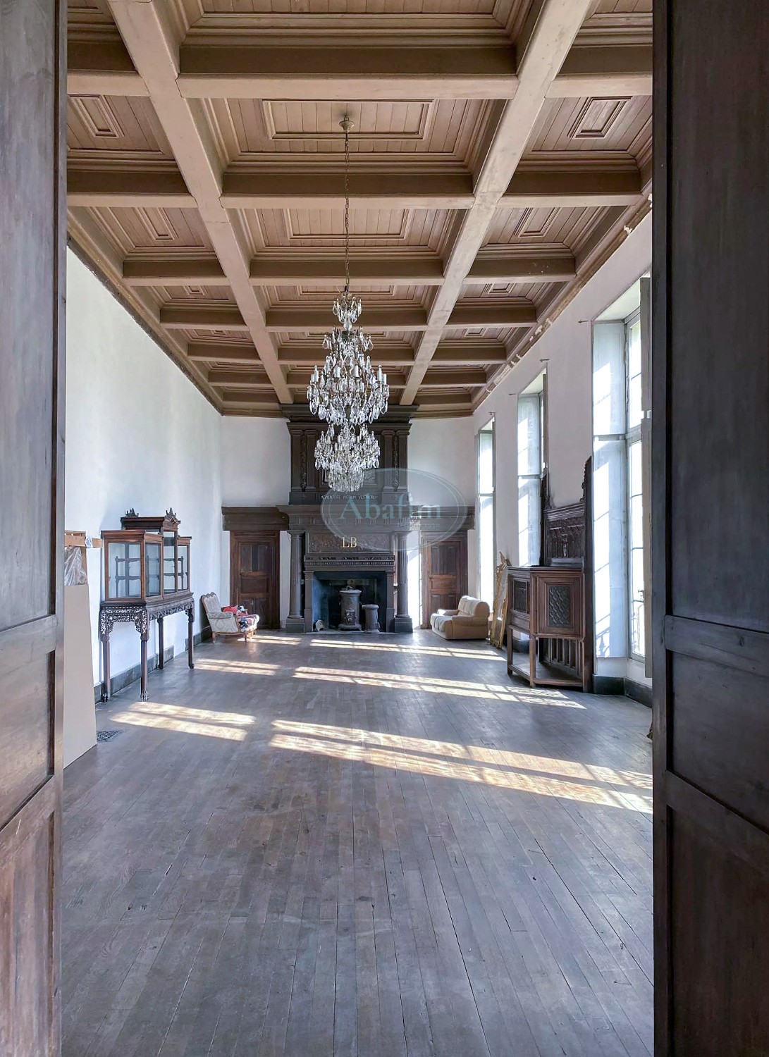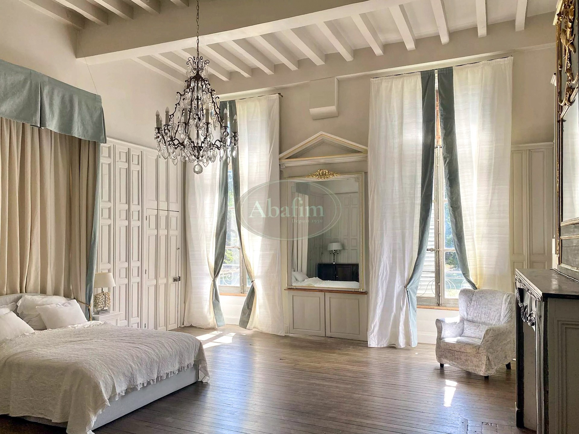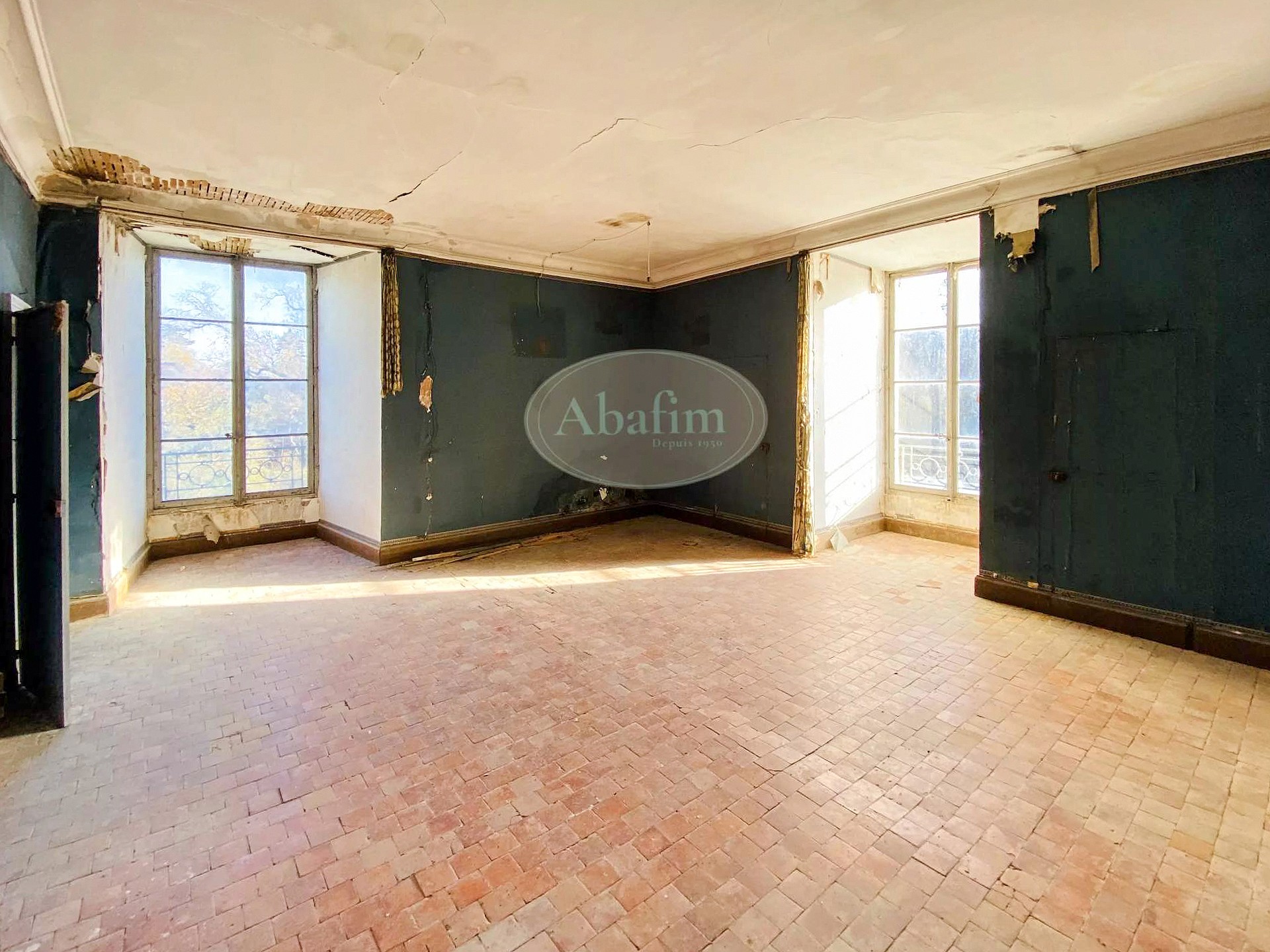 Das Hauptgebäude bietet über 2.000 Quadratmeter Fläche. Die zentrale Eingangshalle mit Terrakottafliesen und Holztäfelung erschließt die Empfangsräume. Zwei Festsäle von jeweils 90 Quadratmetern prägen das Erdgeschoss: der erste mit monumentalem Kamin, Eichenparkett und Kassettendecke, der zweite mit geschnitzten Säulen, Täfelung und Wandteppichen der Gründerfamilien. Dieser öffnet sich über eine Freitreppe zum Park. Die über fünf Meter hohen Decken und die zahlreichen Fenster schaffen lichtdurchflutete Räume. Ein 45 Quadratmeter großer, vollständig getäfelter Salon schließt die Enfilade ab.