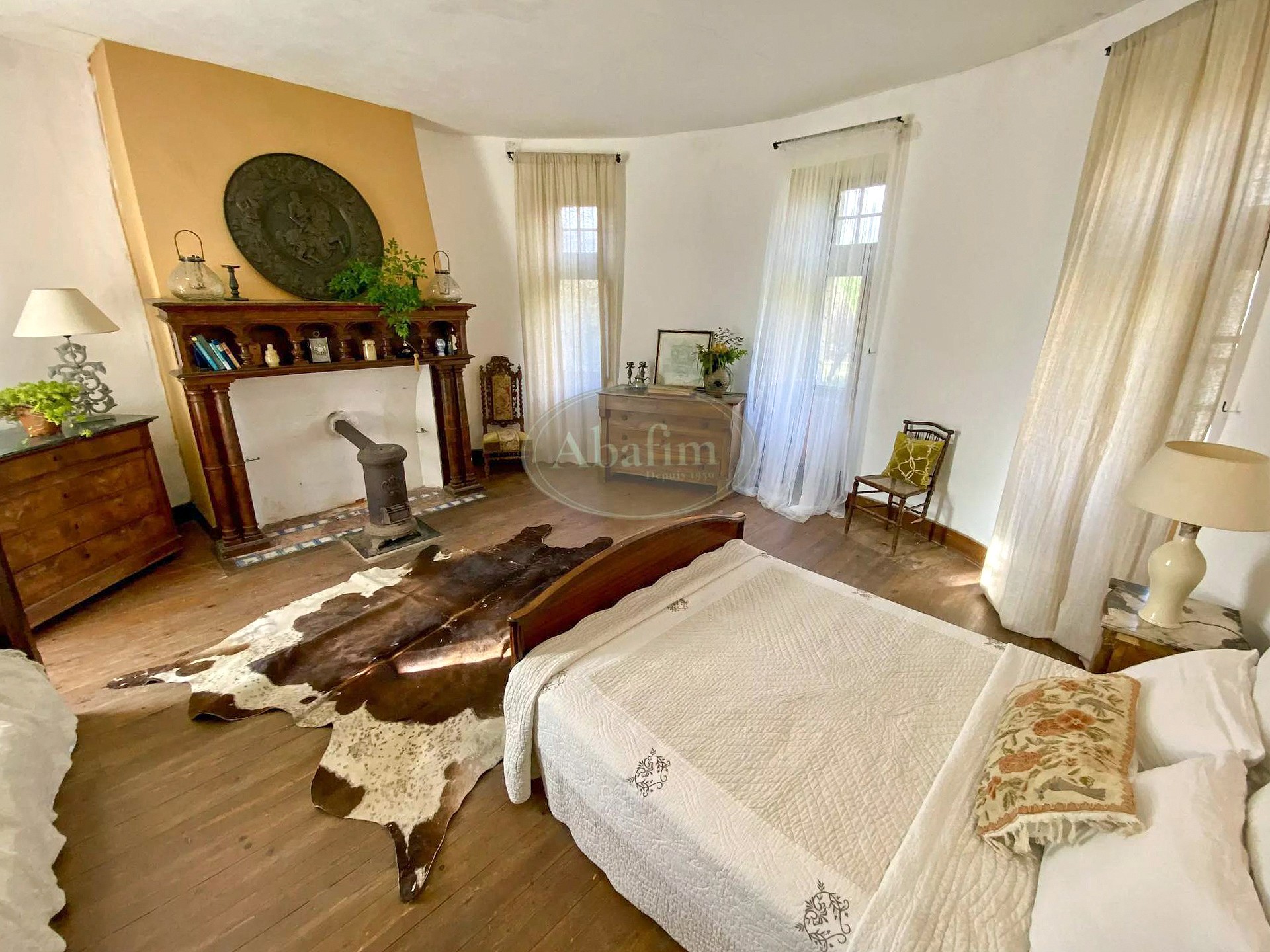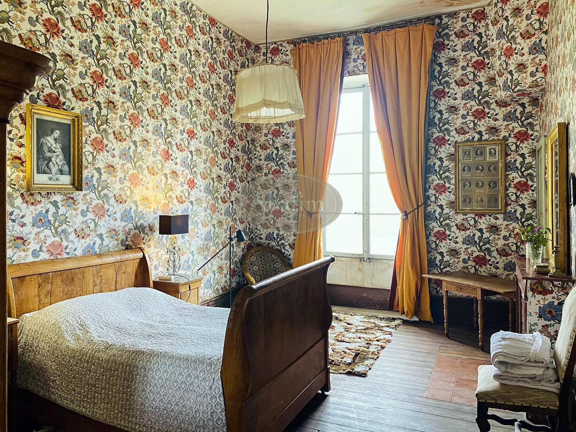 Die oberen Geschosse beherbergen Schlafzimmer, von denen einige renoviert wurden. Die Bibliothek erstreckt sich über drei Räume und 150 Quadratmeter mit historischem Buchbestand.