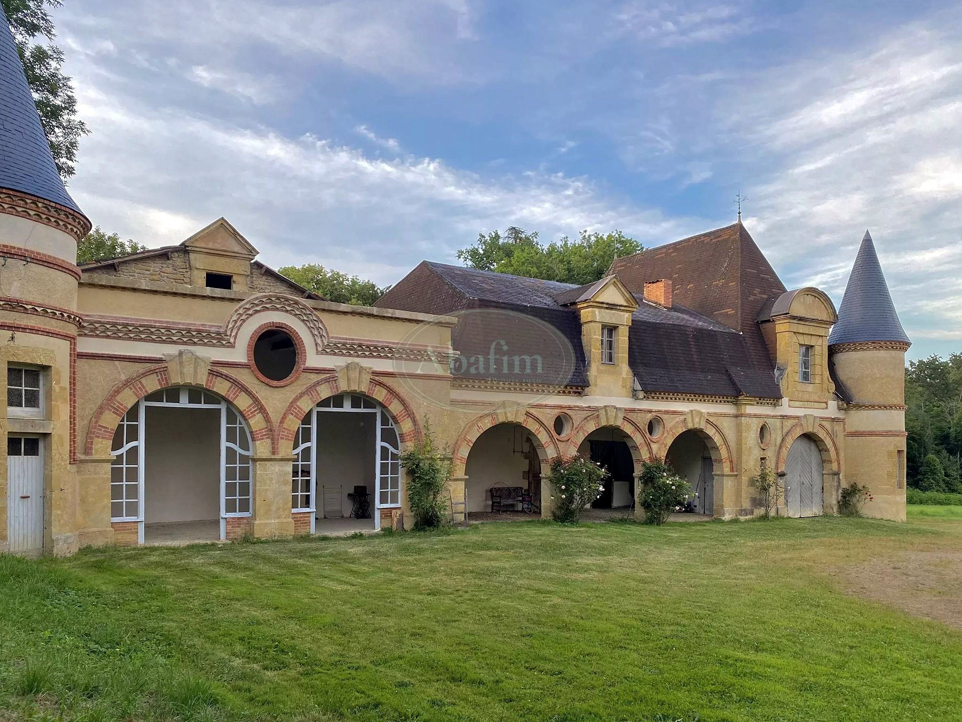 Die Nebengebäude mit ihren Rundtürmen bilden eine architektonische Einheit mit dem Haupthaus: eine ehemalige Orangerie, ein Bauernhaus, Remisen, Weinkeller und vielseitig nutzbare Räumlichkeiten.