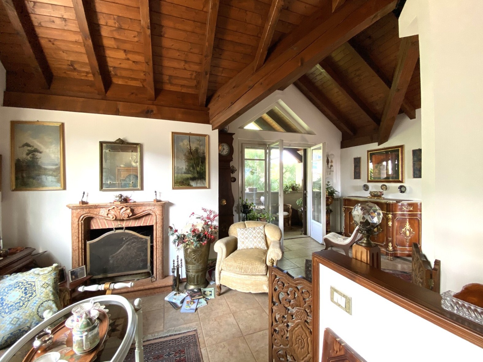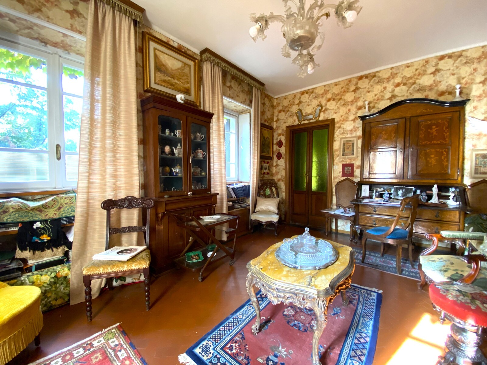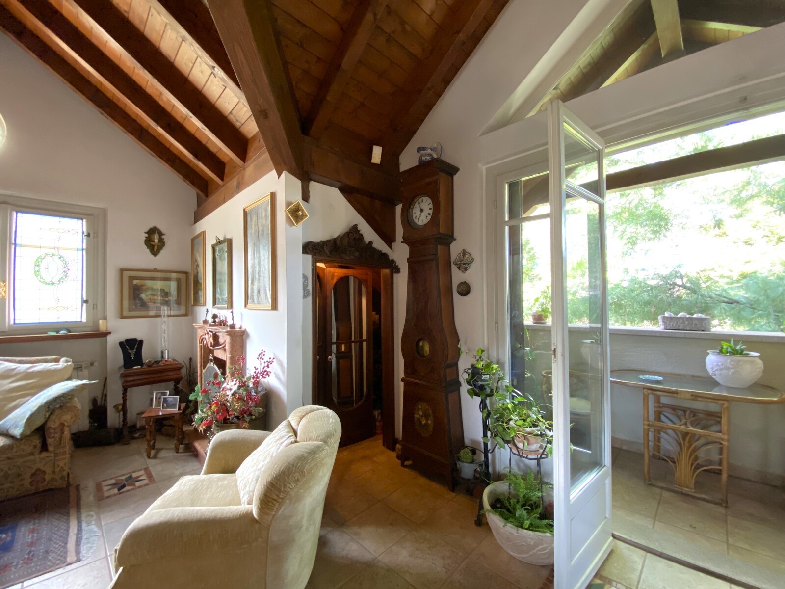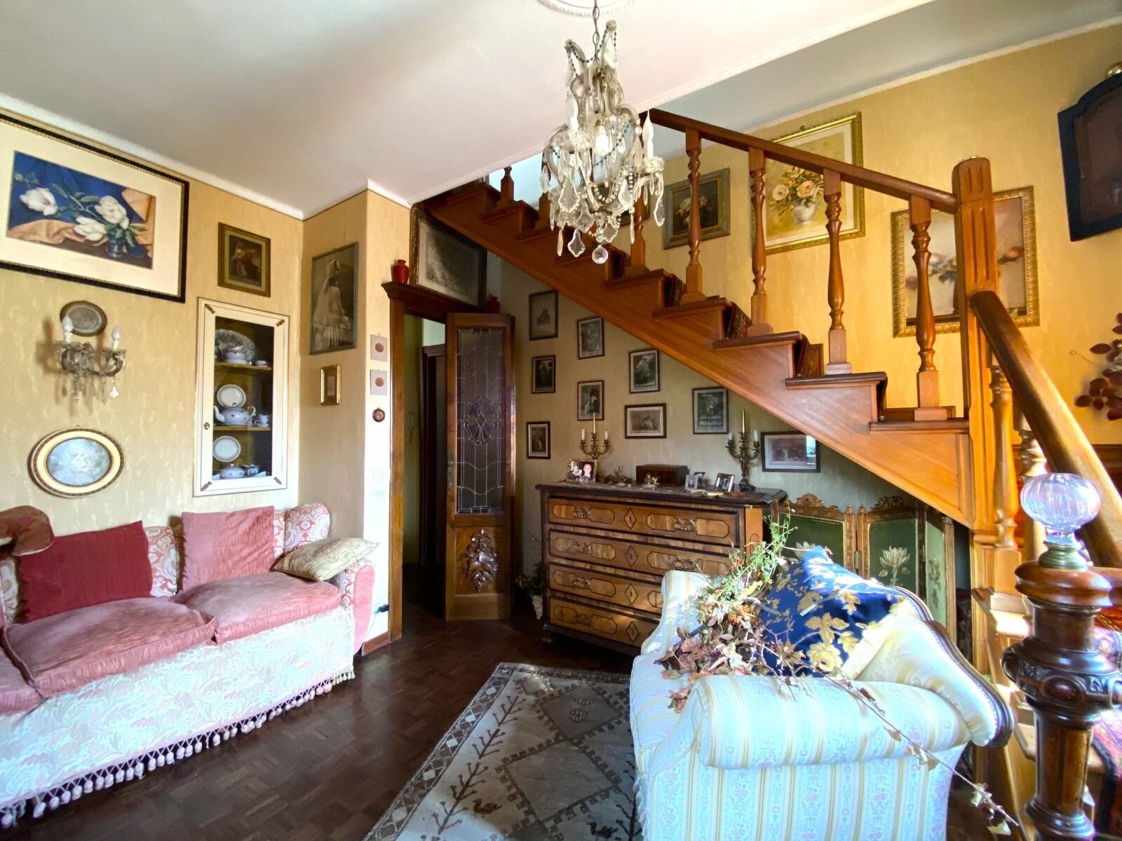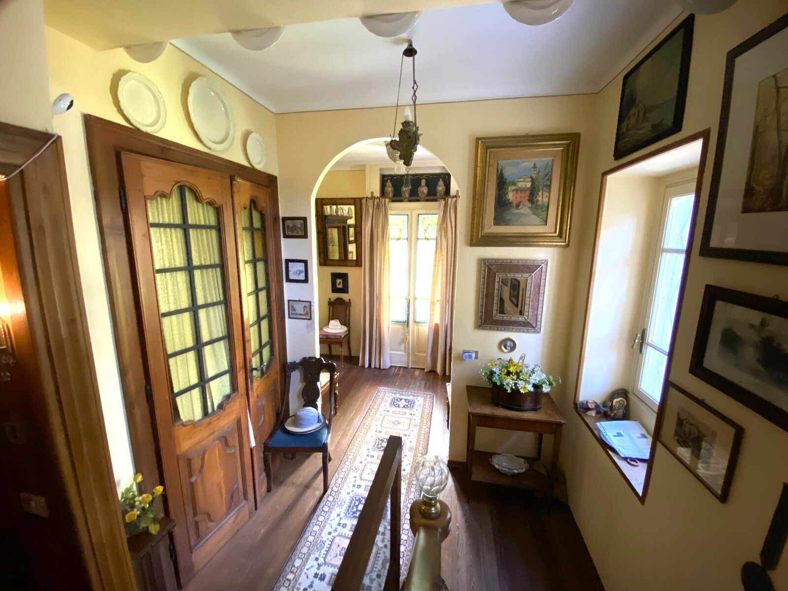 Les éléments remarquables incluent des fenêtres en bois à double vitrage de style Art Nouveau, des placards sur mesure et des cheminées. La villa est vendue partiellement meublée et, grâce aux entrées indépendantes, peut être facilement divisée en trois unités résidentielles. Le chauffage est au gaz, efficace et moderne.