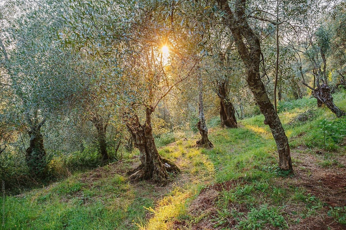 Der Park umfasst 7.550 m² mit geplanter Poolanlage in erhöhter Lage. Ein Olivenhain mit 120 Bäumen ermöglicht eine kleinere Eigenproduktion von Olivenöl. Die Zufahrt erfolgt über asphaltierte Straße, die Autobahn A1 liegt 10 Kilometer entfernt.