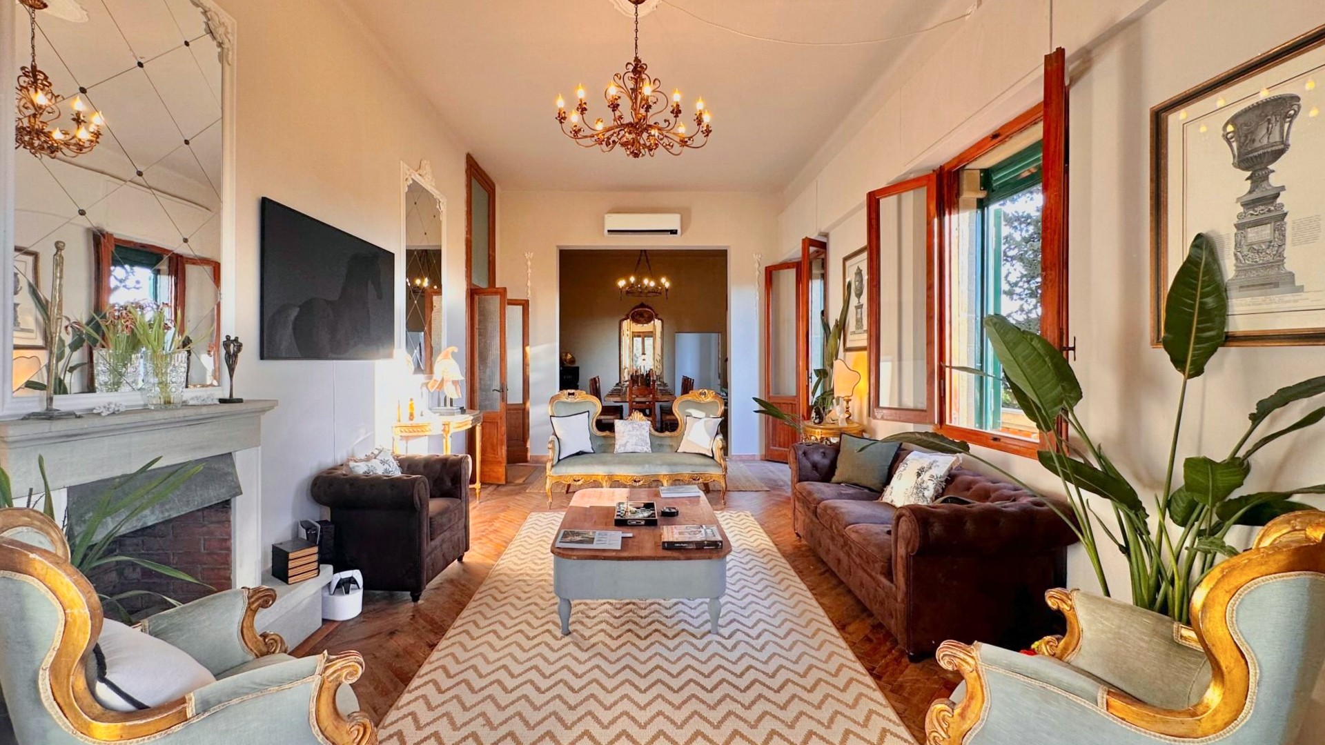 Die Villa wurde Ende des 19. Jahrhunderts errichtet und folgt den Proportionen der Gilded-Age-Architektur: hohe Decken, großzügige Raumfolgen, ein Turm mit Aussichtsplattform. Die Hauptgeschosse wurden restauriert, technische Anlagen erneuert, historische Details bewahrt. Die  Kellerräume, das Dachgeschoss sowie das Zitronenhaus bieten weitere Ausbaureserven für individuelle Konzepte.