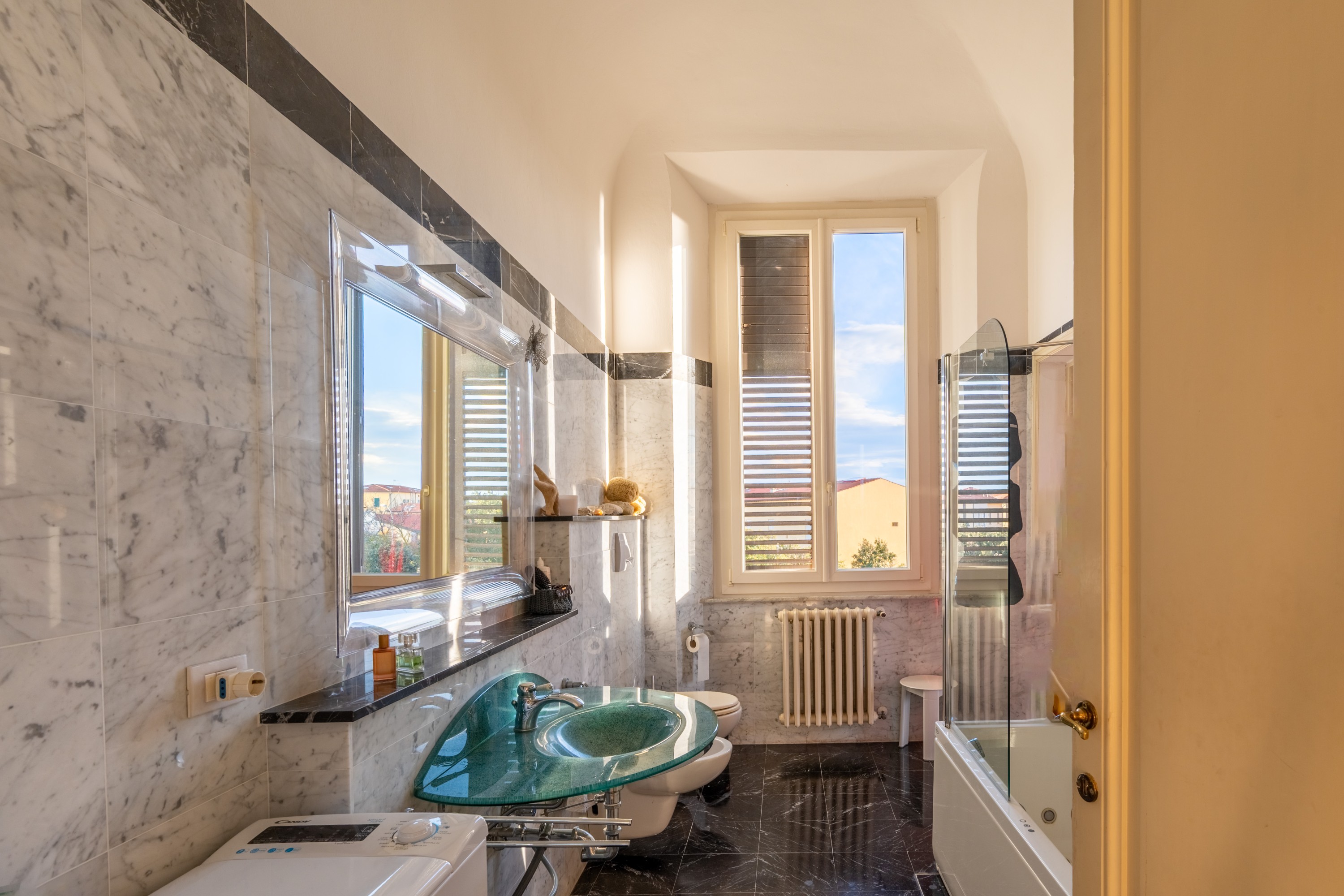 Villa Bondi appartiene alle Dimore Storiche D'Italia, è un esempio di eleganza senza tempo, immersa nella bellezza di Marina di Pisa. Qui ogni dettaglio è pensato per offrire comfort, privacy e relax, con spazi raffinati e una vista incantevole. La dimora conserva pregevoli decorazioni in maiolica attribuibili alla Manifattura di Signa, storica fabbrica ceramica attiva tra Otto e Novecento e legata alla famiglia proprietaria della Villa Bondi, che conferiscono alla residenza un particolare valore decorativo e testimoniano il gusto artistico dell’epoca. La Villa, di circa 1016 mq circondata da un giardino di 3.500 mq con piscina, fu edificata fra il 1905 e il 1909 dalla famiglia Bondi, commercianti fiorentini, fondatori nel 1888 della Manifattura di Signa a Firenze, da cui provengono le ceramiche che contornano le finestre della villa e i cornicioni. All'interno della villa e nel parco invece sono ancora conservati vasi decorati, bassorilievi e busti di ispirazione neoclassica. La proprietà è suddivisa in quattro unità immobiliari, ognuna dotata di ingresso indipendente, e si distingue per spazi generosi, funzionalità e massima privacy. L’unità principale, cuore della Villa, si sviluppa tra piano rialzato e primo piano e offre ambienti luminosi e perfettamente distribuiti. Al piano rialzato si trovano un’ampia cucina, una elegante sala da pranzo con camino, un luminoso soggiorno con patio esterno, uno studio e una camera ospiti con bagno privato. Il piano superiore ospita tre camere da letto, tre bagni, una funzionale stanza armadi, oltre a una pratica cucina di piano e una terrazza vista mare. La seconda unità, caratterizzata da un’atmosfera calda e riservata, si trova al livello mansardato ed è composta da cucina, una zona pranzo-soggiorno, due camere e due bagni. Infine il livello seminterrato ospita le restanti due unità, di cui una locata e adibita a studi medici, con ingresso indipendente, ideale per chi desidera coniugare abitazione e attività professionale, l’altra composta da cucina, camera e bagno, ideale come dépendance o alloggio di servizio. Allo stesso livello si trova poi un comodo locale tecnico. A completare la Villa, una torretta con vista panoramica che regala una prospettiva incantevole del mare, dei Monti Pisani e delle Alpi Apuane. L’accessibilità e comodità sono garantite dal pratico ascensore interno che collega tutti i piani principali. All’esterno, la proprietà è immersa in un giardino privato perfetto per relax, eventi e momenti di convivialità. La piscina, che misura 6x12 mq, è ideale per rinfrescarsi durante le calde giornate estive. Villa Bondi rappresenta una rara combinazione di lusso, funzionalità e versatilità, adatta sia a residenza privata che a utilizzo professionale o ricettivo. Ogni dettaglio della proprietà è studiato per offrire comfort, eleganza ed esclusività.