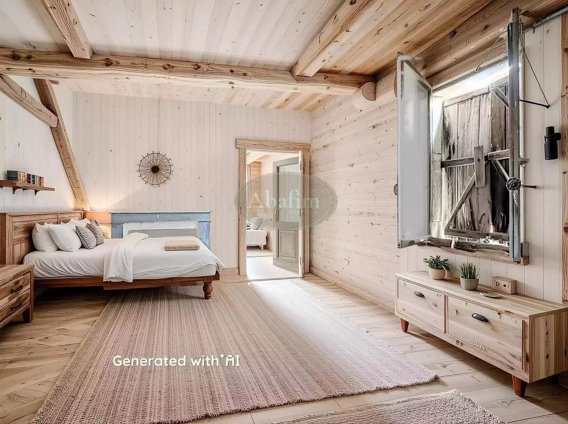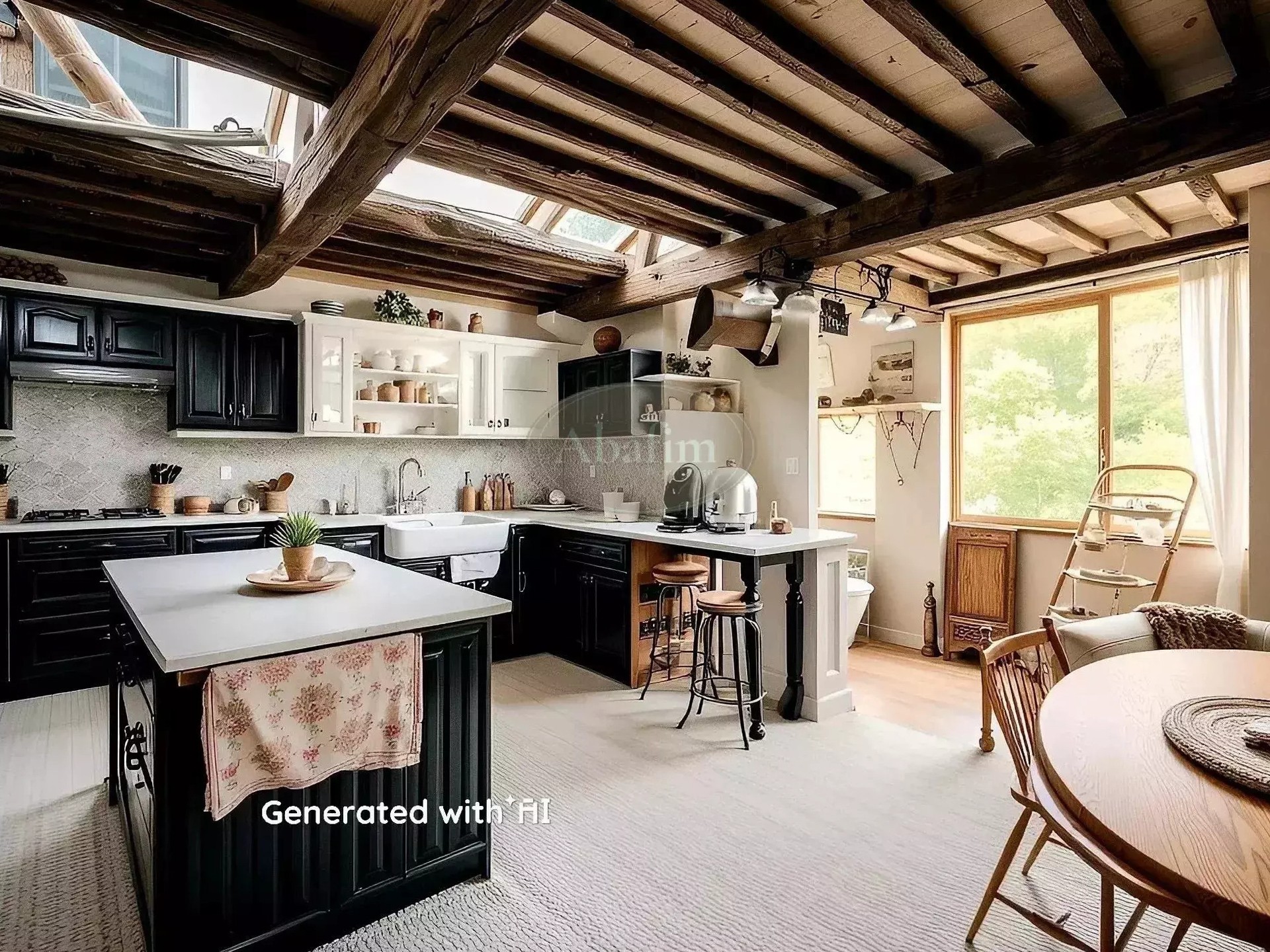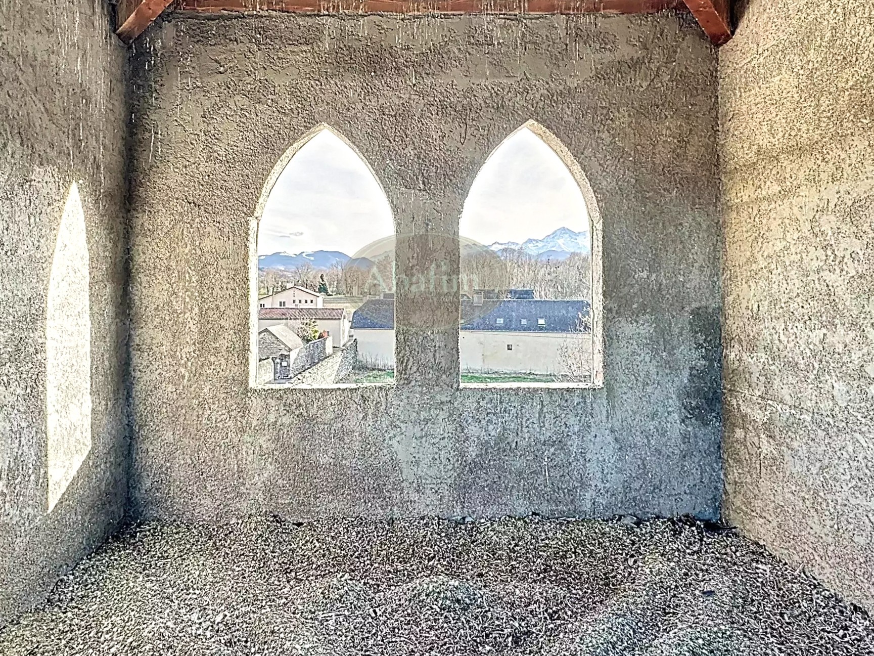 On accède aux pièces du rez-de-chaussée par un hall d'entrée traditionnel. Une grande pièce de 35 m² peut servir de cuisine, une salle à manger de 21 m² donne sur la cour. Deux autres pièces de 43 m² et 13 m² complètent ce niveau. Un escalier en béton mène au premier étage où se trouve une pièce de 45 m² avec accès à une terrasse de 15 m² et vue sur les Pyrénées. S'y ajoutent une pièce de 26 m² en enfilade avec une autre de 15 m².