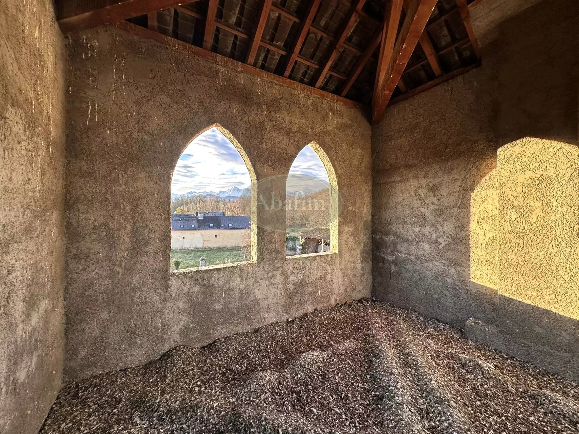 La propriété se situe entre Bagnères-de-Bigorre et Tarbes, au calme, sur un terrain d'environ 1 200 m². La maison principale date de la fin du XIXe siècle et offre une surface habitable d'environ 287 m². Une tour permet de profiter d'une vue sur les Pyrénées. L'exposition est plein sud.