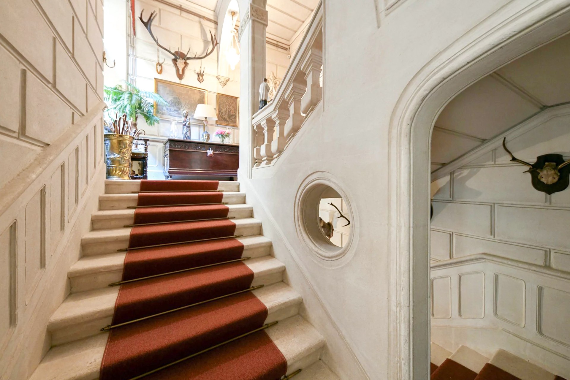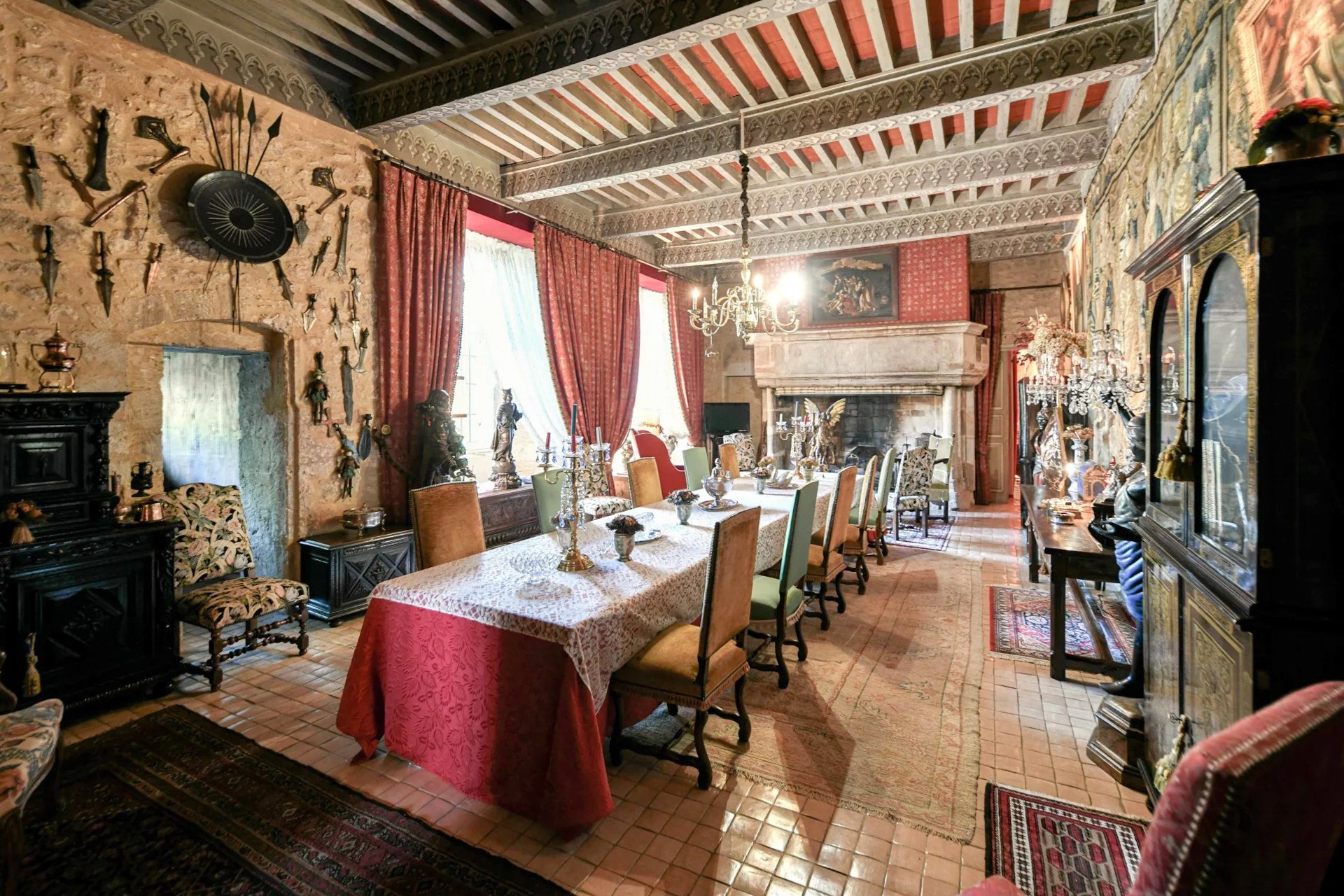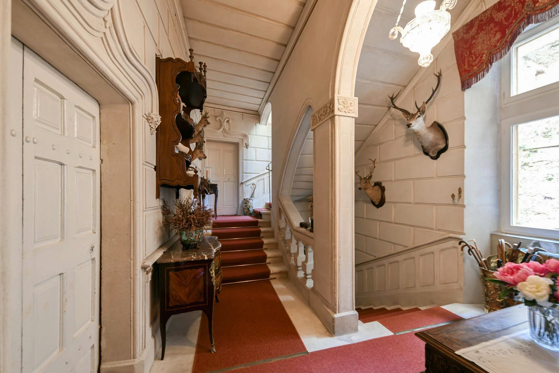 Son imposant porche ouvre sur la cour d’honneur, une chapelle seigneuriale ainsi que trois garages, une magnifique sellerie, une volière et une écurie. Cet espace comprend également une maison de gardien composée de deux salons, une cuisine, trois chambres et une salle de bain ainsi qu’un studio d’invités.