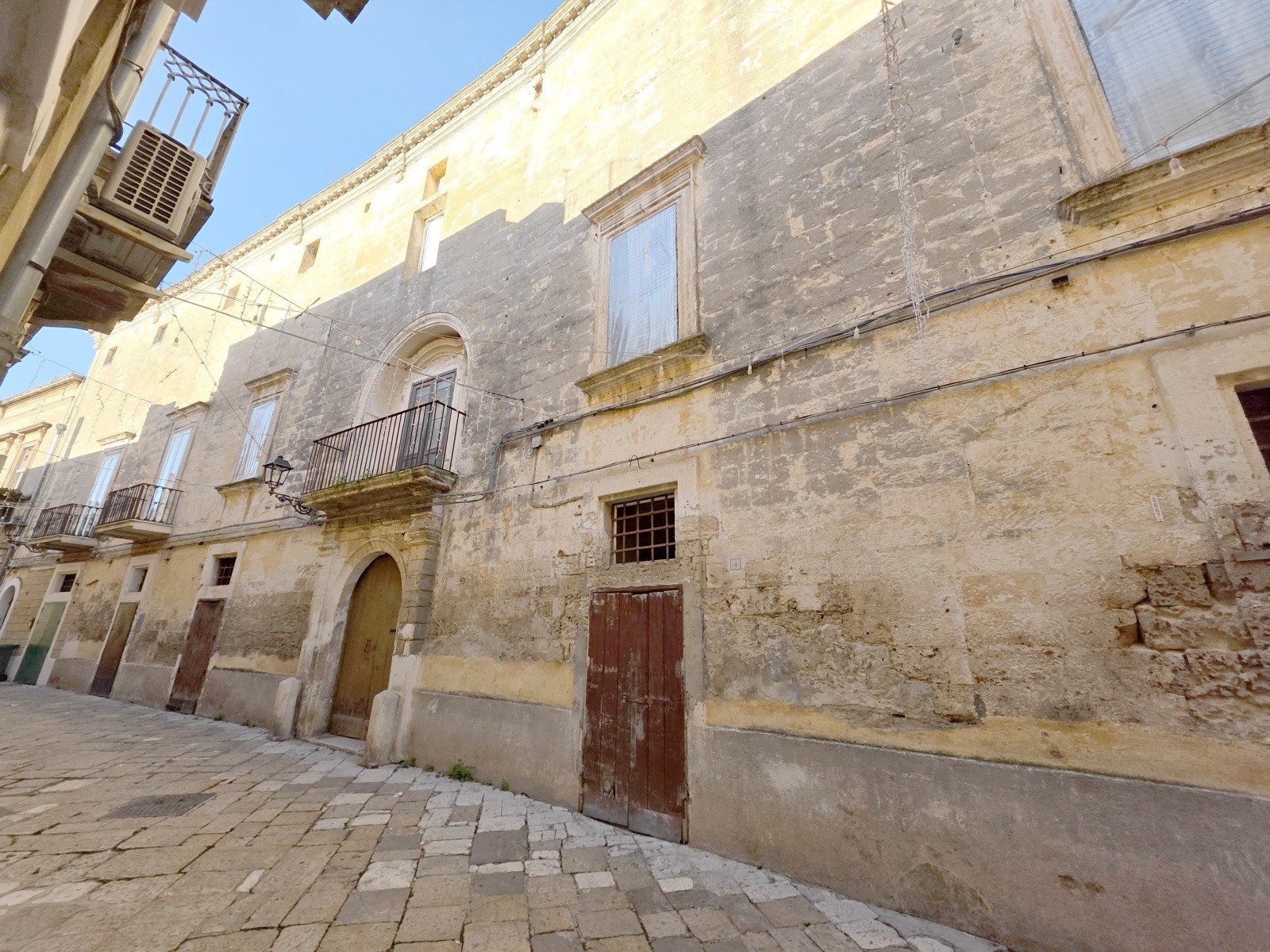 While the exact construction date is unknown, the palace stands where the ancient Porta di San Nicola once marked the city’s defences, already shown on Centonze’s 1643 maps. Over centuries, the property evolved alongside the town’s growth, and traces of those changes remain visible—sealed openings, reconfigured ground-floor access and later balcony additions that narrate its long life.