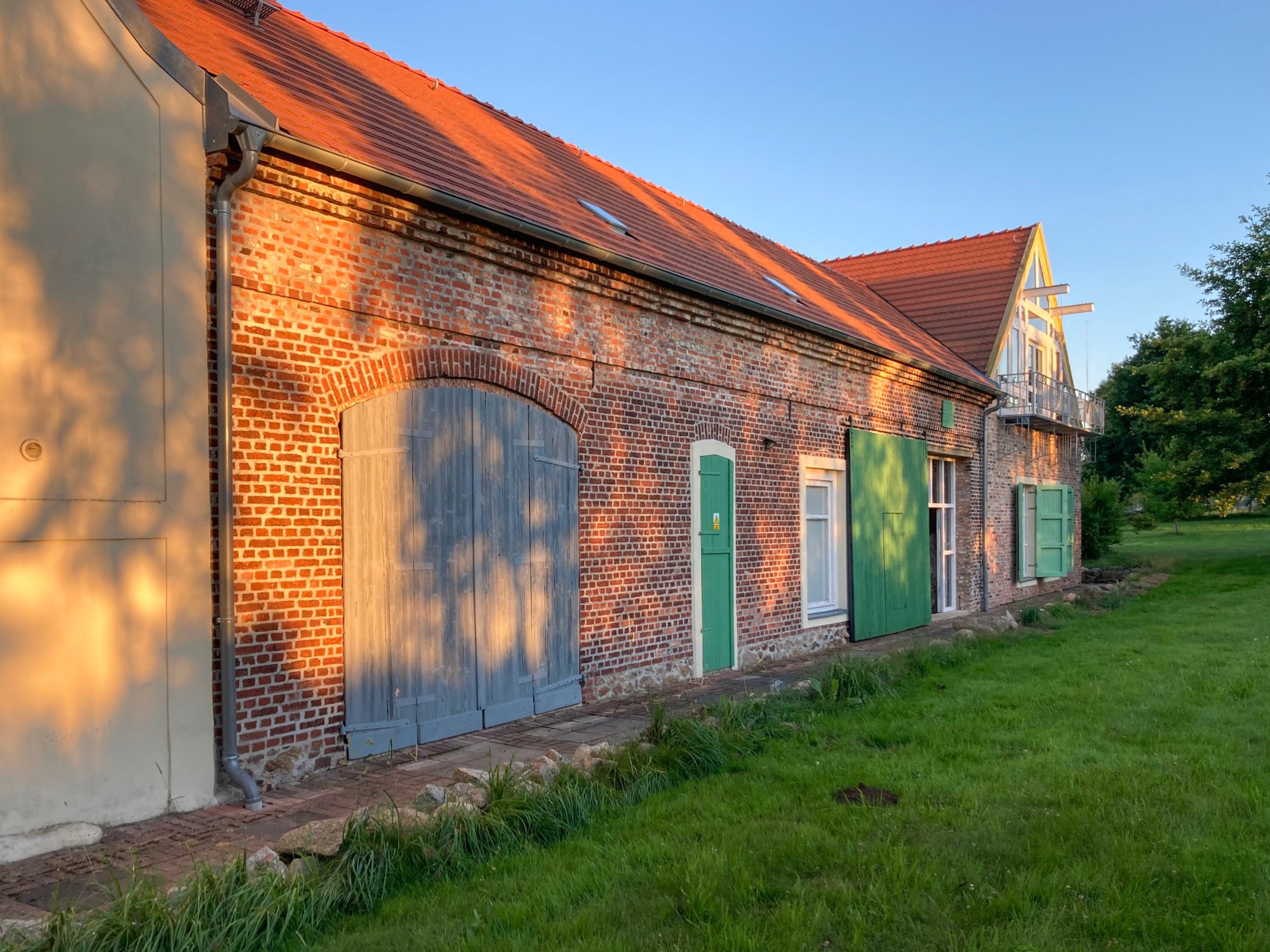 Cet ancien corps de ferme organisé autour d’une cour fermée se trouve à quelques kilomètres de Görlitz. Les bâtiments s’articulent autour d’une cour intérieure protégée, formant un ensemble cohérent qui réunit espaces de vie, zones de travail et potentiel d’extension. Le cadre est calme et rural tout en restant bien connecté à l’international, ce qui permet de concilier vie quotidienne et activités professionnelles ou artistiques.