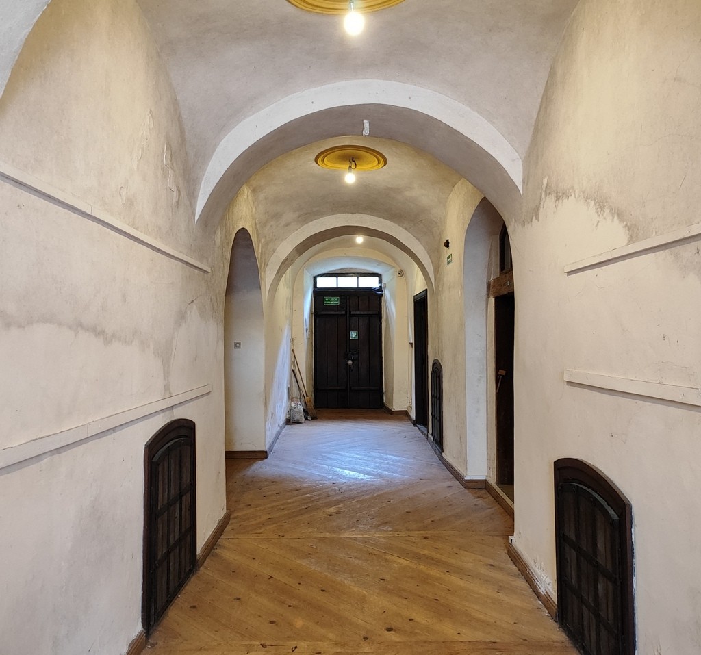 -parter: 222,2 m² (sala wystaw, ekspozycje, biuro, archiwum, sanitariaty),