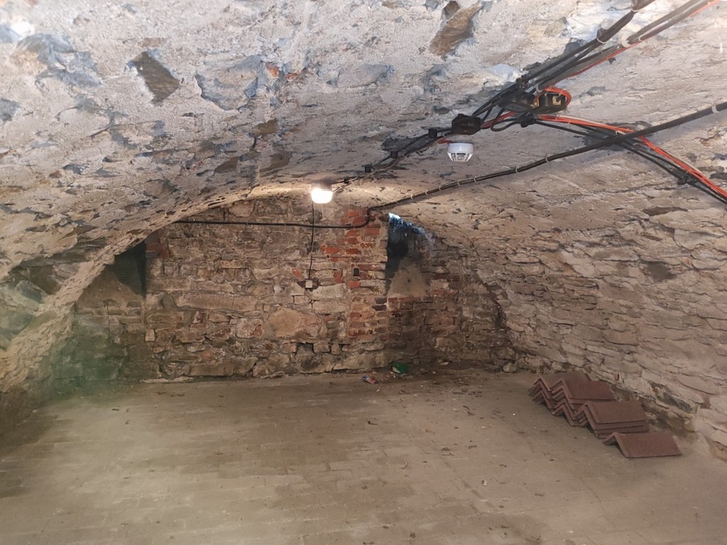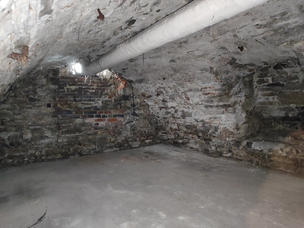 -piwnice: 77,7 m² (magazyny, korytarze),