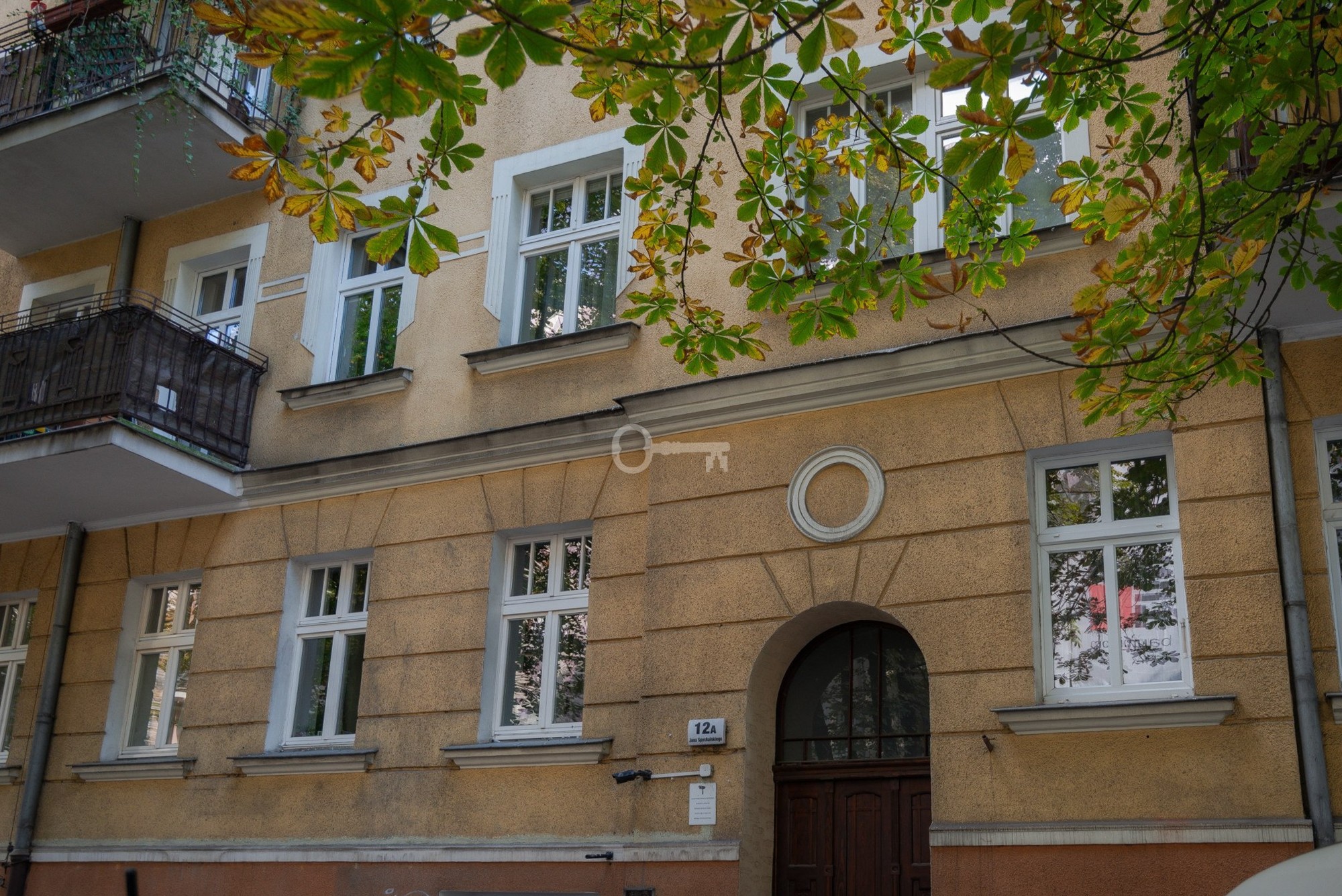 L’appartement est situé au deuxième étage d’un immeuble historique restauré (« kamienica ») du début du XXe siècle, entre Nowy Rynek et Rynek Wildecki. Le centre-ville est accessible à pied, avec des connexions de tramway et de bus à proximité immédiate.