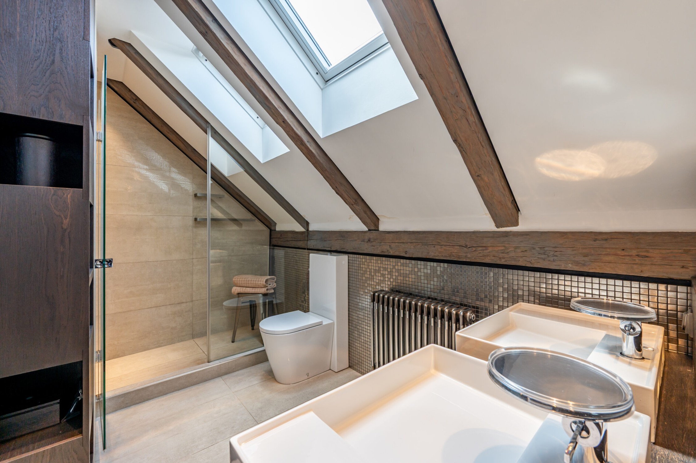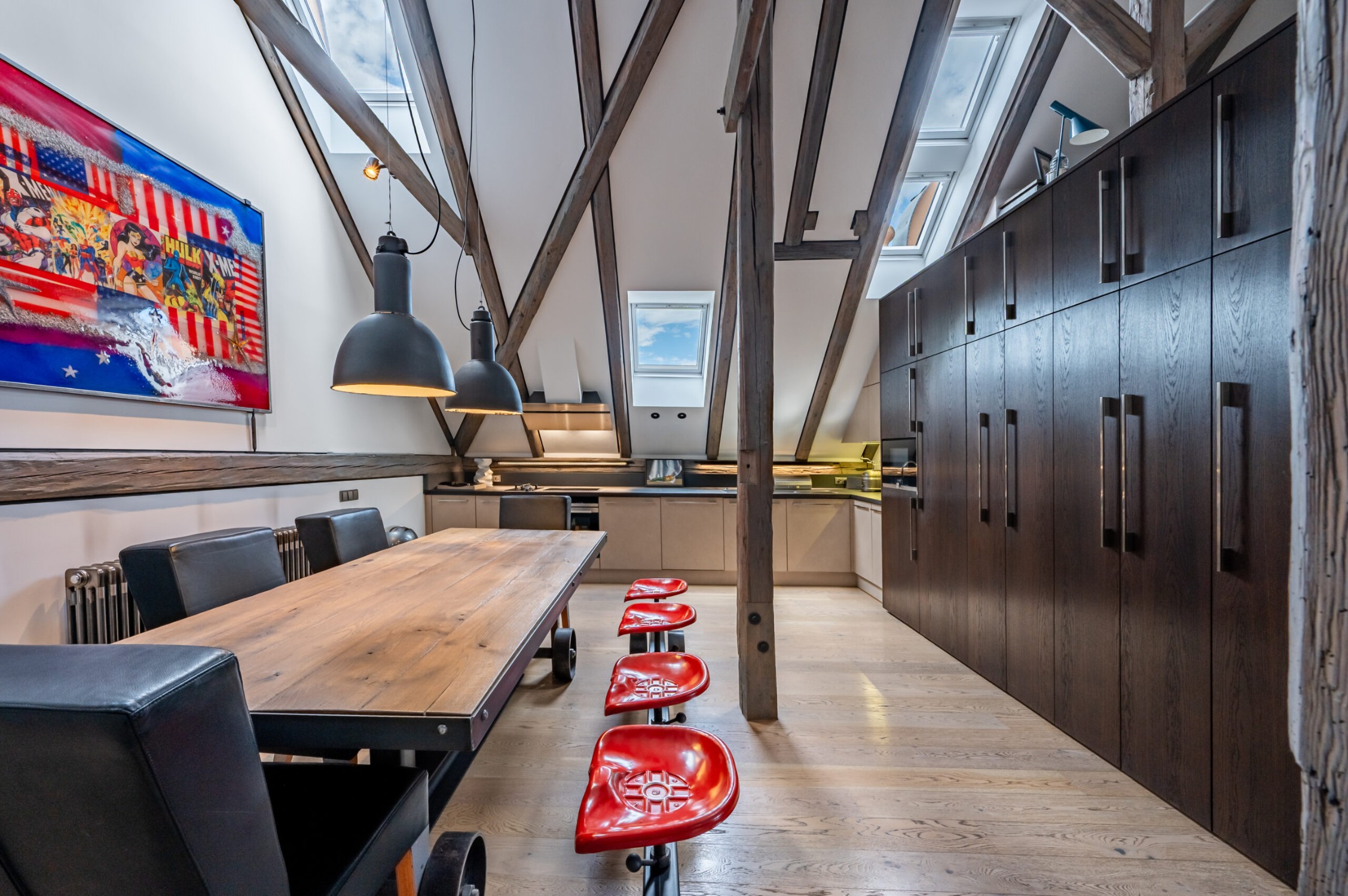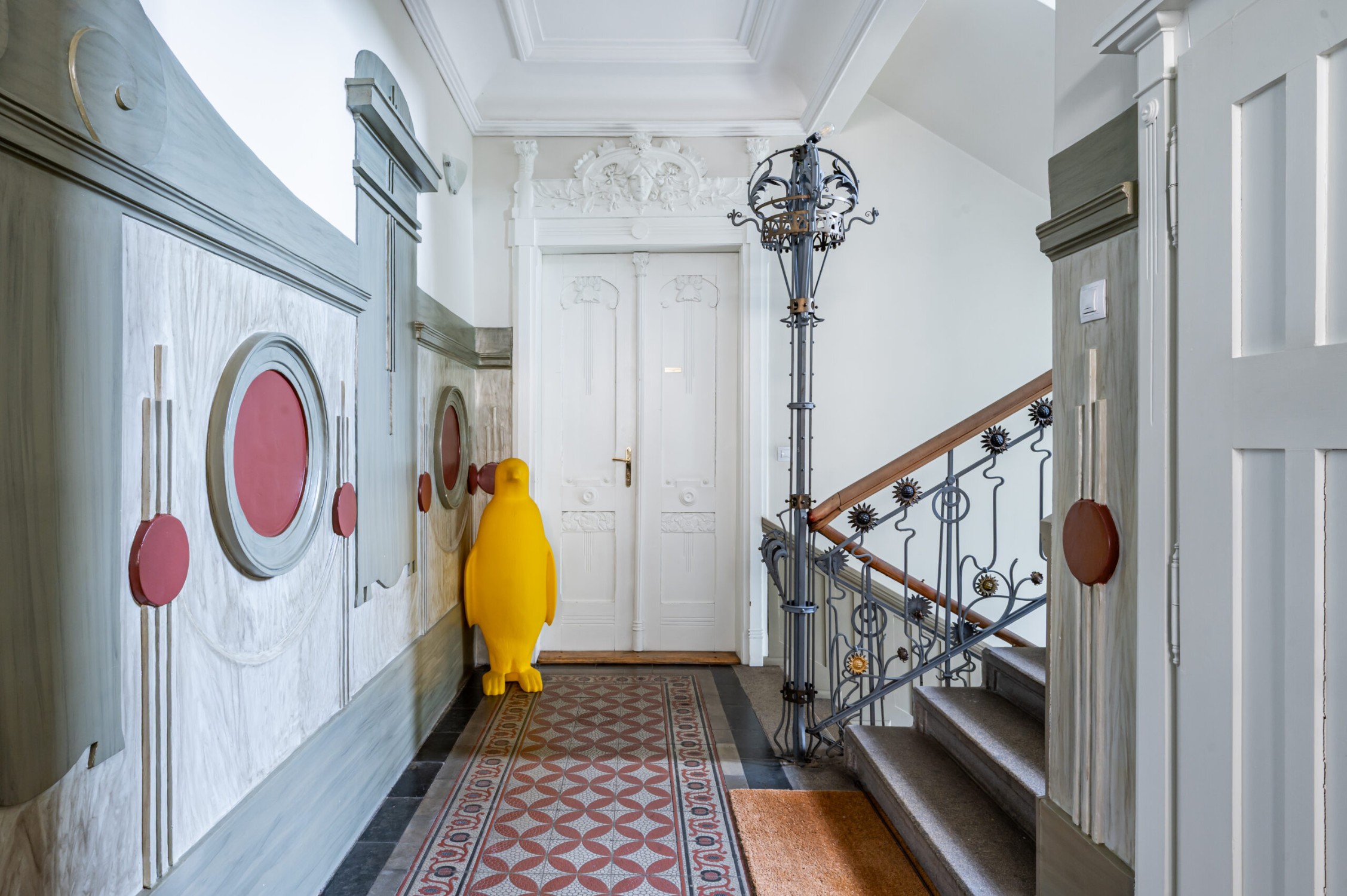 Entre 2005 et 2009, le bâtiment a fait l’objet d’une restauration minutieuse sous la direction d’un architecte italien. Le résultat allie intégrité historique et confort contemporain. Les stucs originaux, fresques et éléments décoratifs ont été conservés avec soin, tandis que des installations modernes – notamment un ascenseur et une spacieuse maisonette avec terrasse – ont été intégrées de manière harmonieuse à l’architecture historique.