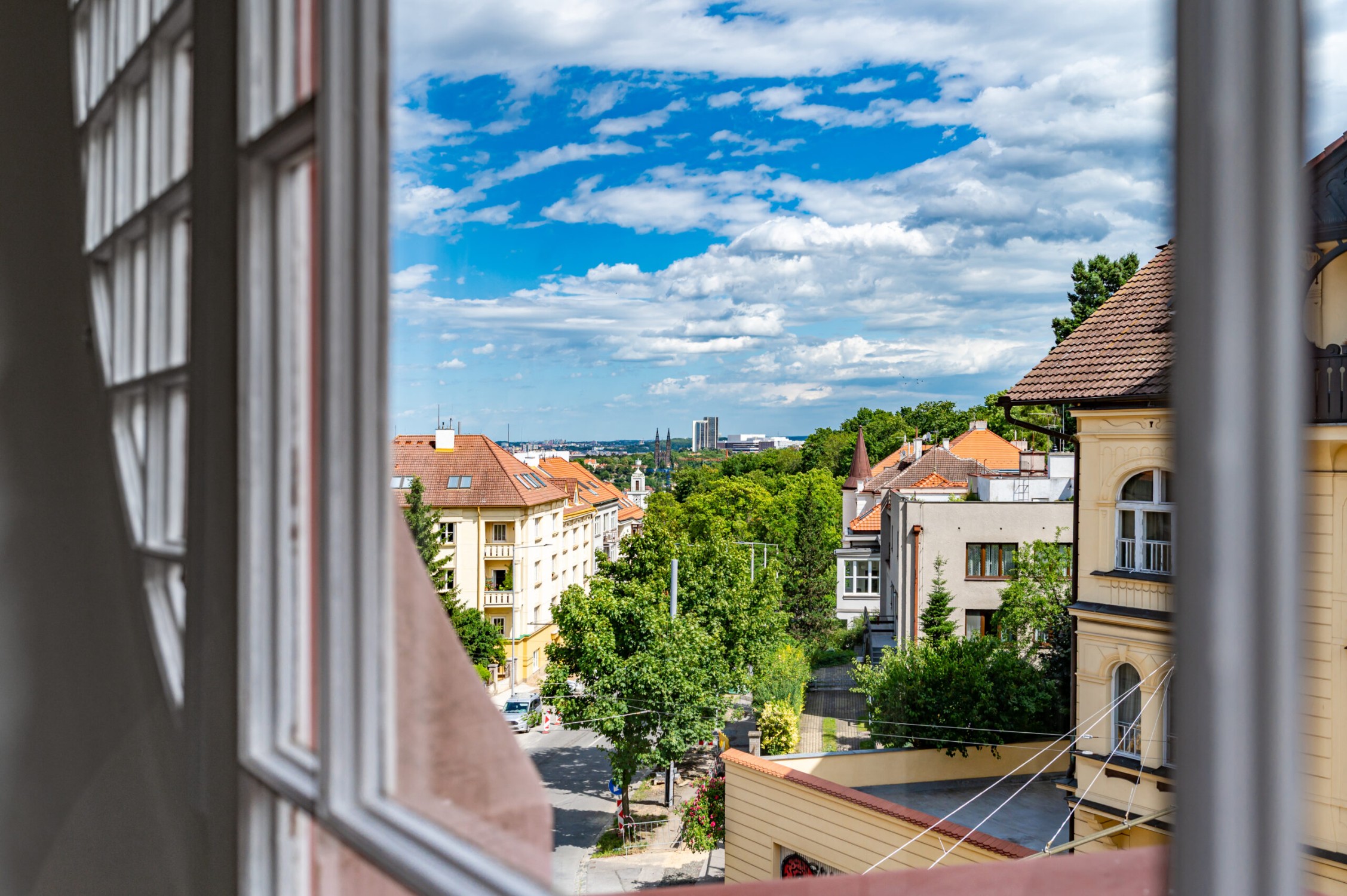La façade de la demeure a été imaginée et réalisée par le célèbre peintre académique František Kobliha. Son héritage artistique se reflète dans les détails ornementaux, les fresques, la figure de l’ange et le cadran solaire, chaque élément témoignant de l’authentique esthétique moderniste.