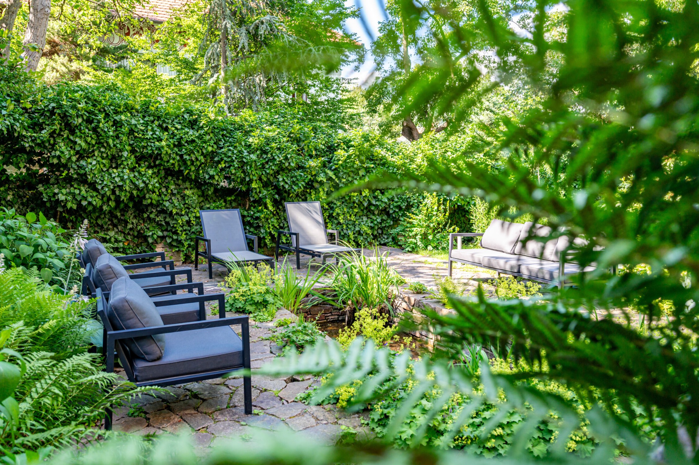 Le terrain bénéficie d’arbres matures, d’un bassin et d’espaces privés de détente. Les équipements intérieurs comprennent neuf salles de bains, un élégant escalier central, un ascenseur ainsi qu’un bureau dans la remarquable tourelle, dont les fenêtres circulaires offrent des vues impressionnantes.