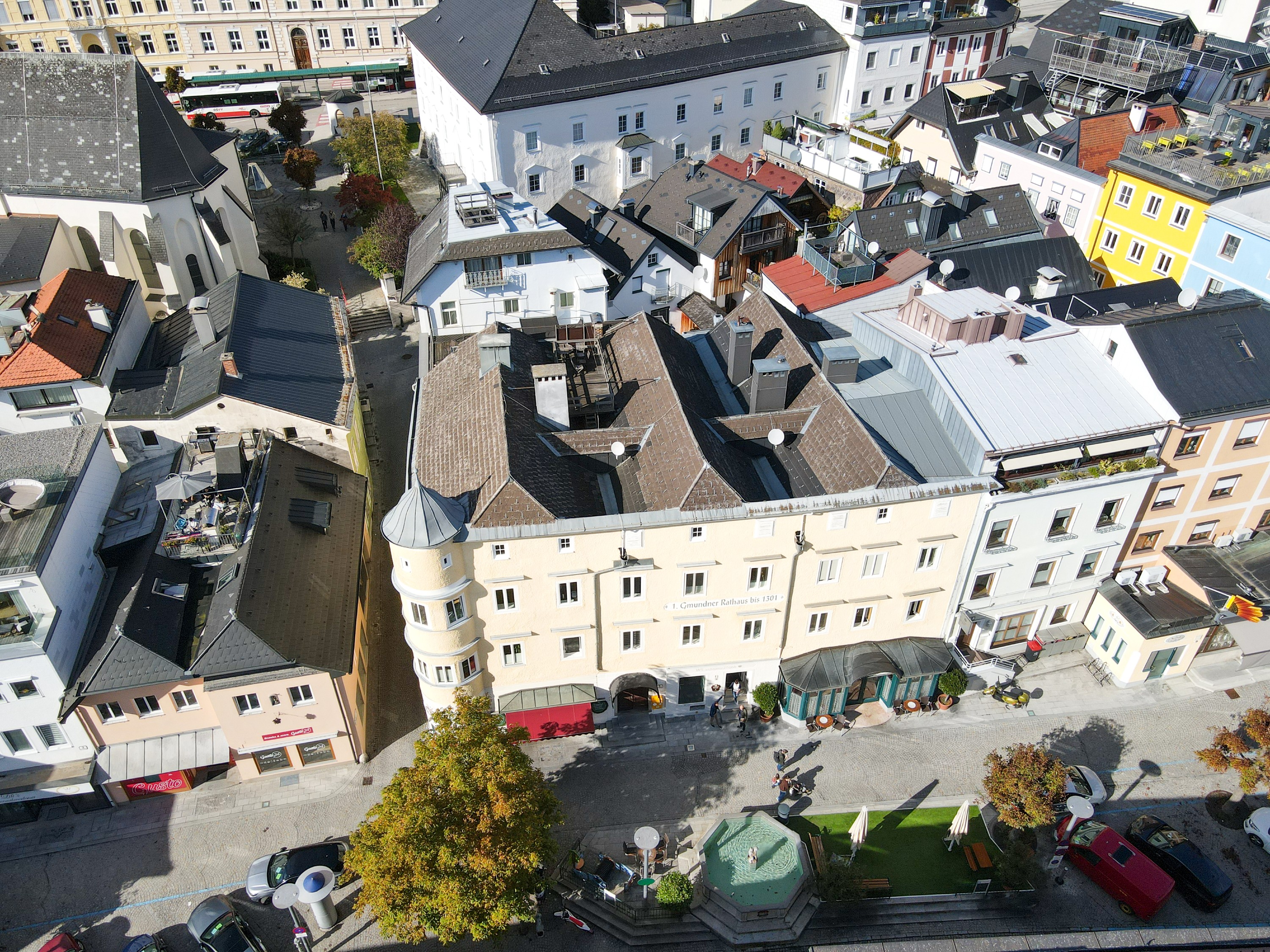 Historisches Rathaus am Marktplatz in Gmunden mit genehmigtem Dachgeschossausbau