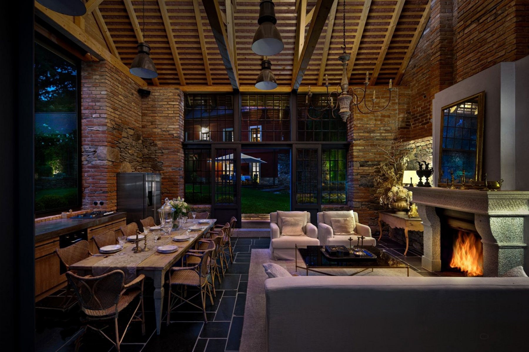 Cheminée Véranda Plafonds voûtés