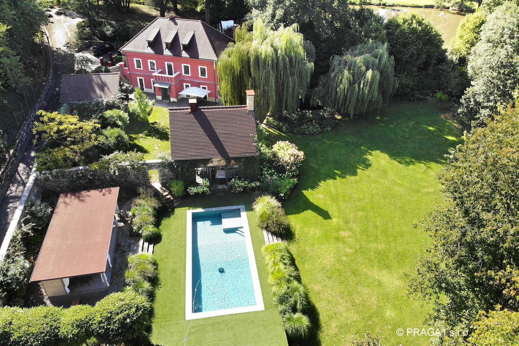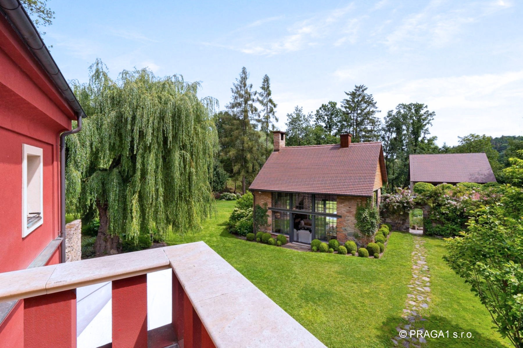 Le domaine bénéficie d’une situation très calme en lisière de village, accessible par une impasse, offrant intimité et sérénité tout en restant proche de la capitale tchèque.