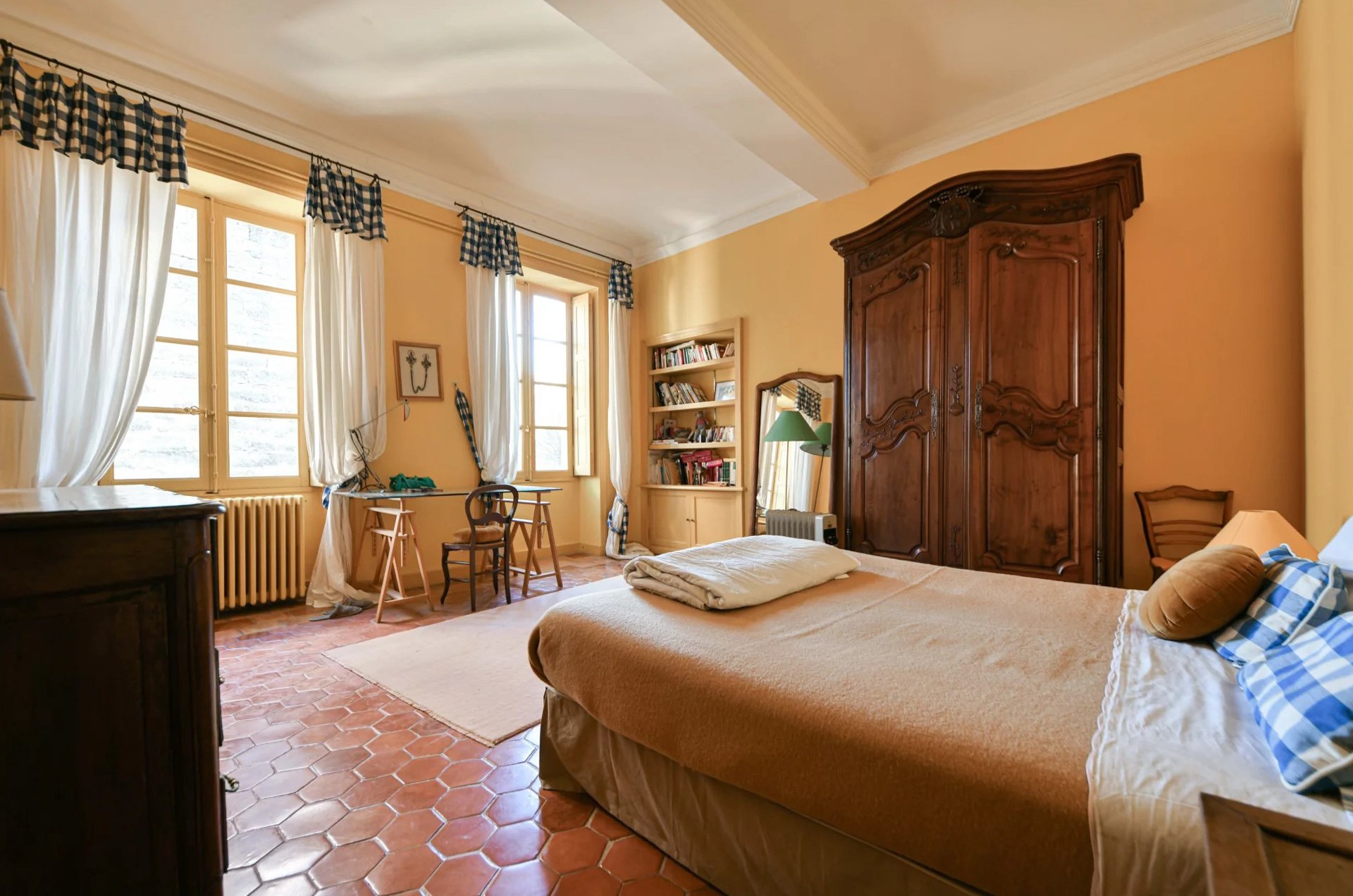 De retour au rez-de-chaussée, le hall principal donne accès à un premier appartement d'invité de 72 m² : deux chambres, un bureau ainsi qu'une petite cuisine. Le large escalier à quart tournant mène à l'étage et permet l'accès au second appartement d'invité de 43 m², composé d'une entrée, cuisine/salle à manger, une chambre et salle de bains.
