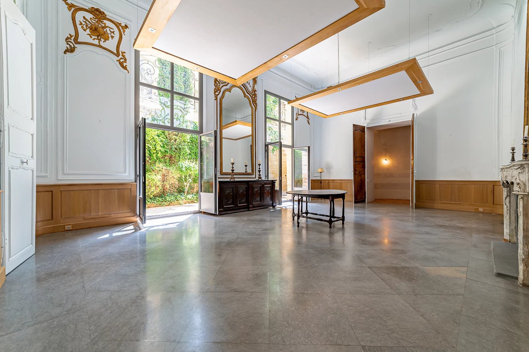 Rez-de-chaussée d'un hôtel particulier historique. Restauration soignée, beaux éléments architecturaux. Pièce de réception de 64 m² ouverte sur le jardin. Cœur du centre historique. Jardin privatif et cave de 30 m².