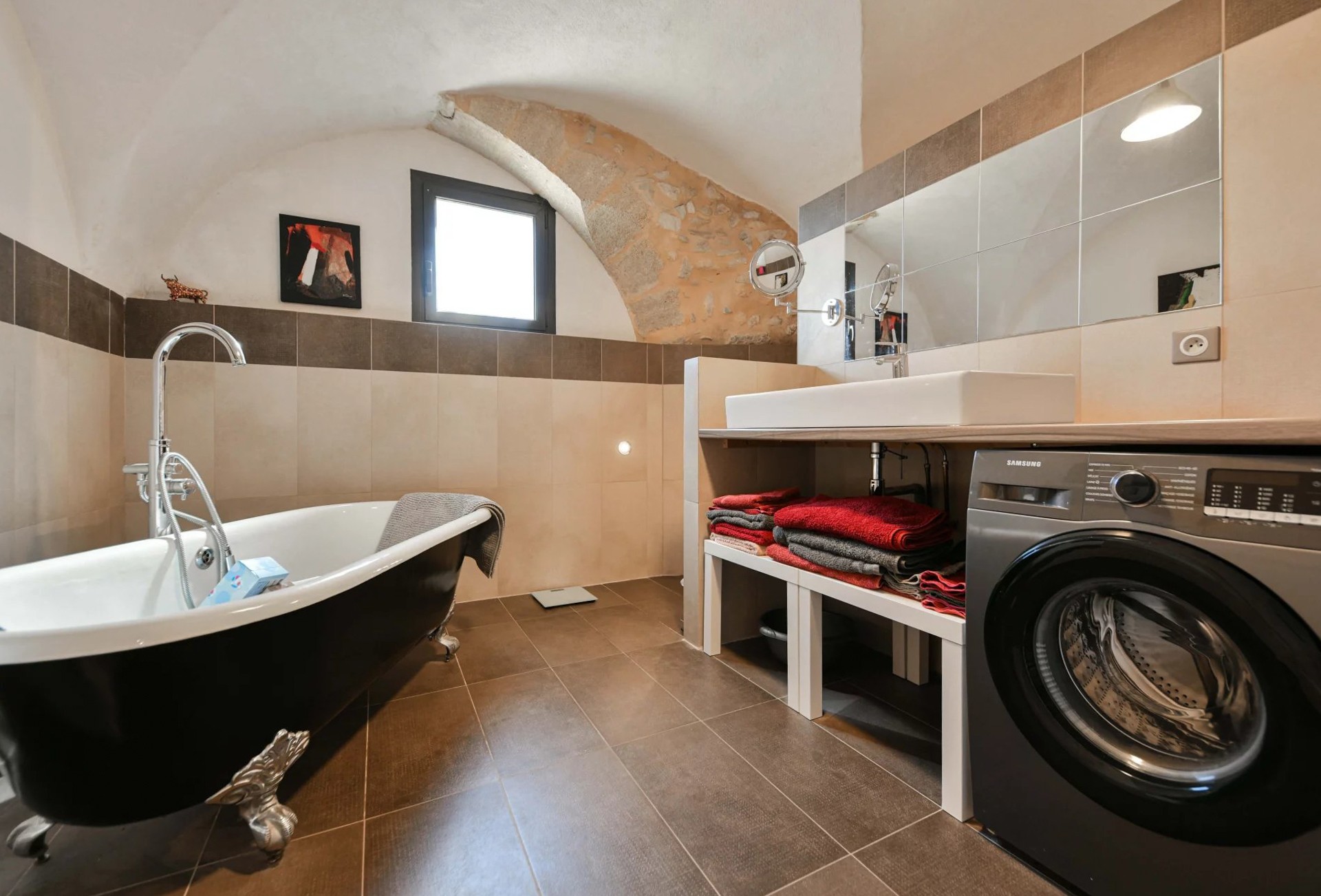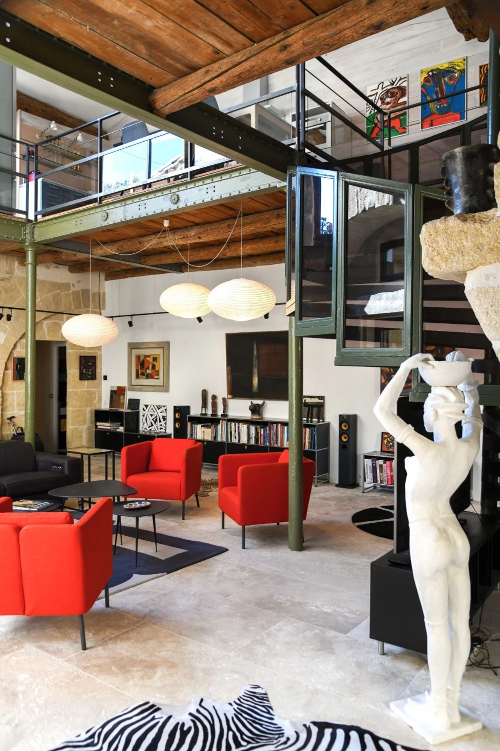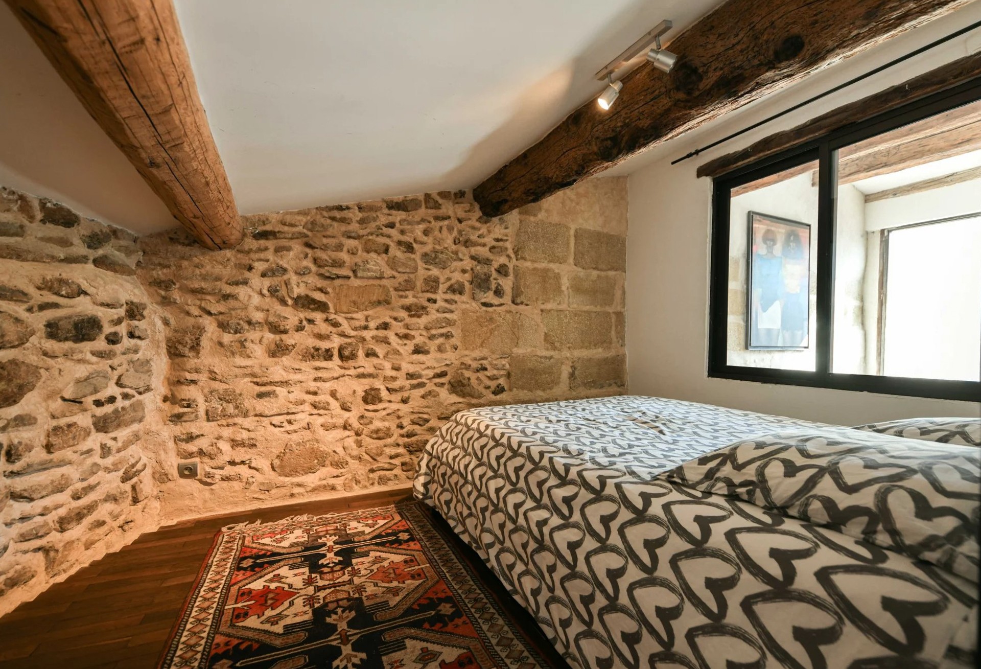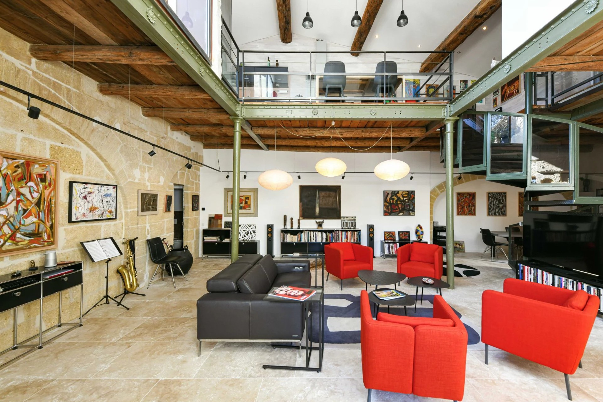 Ancien moulin à huile rénové avec volumes exceptionnels dans village avec commerces