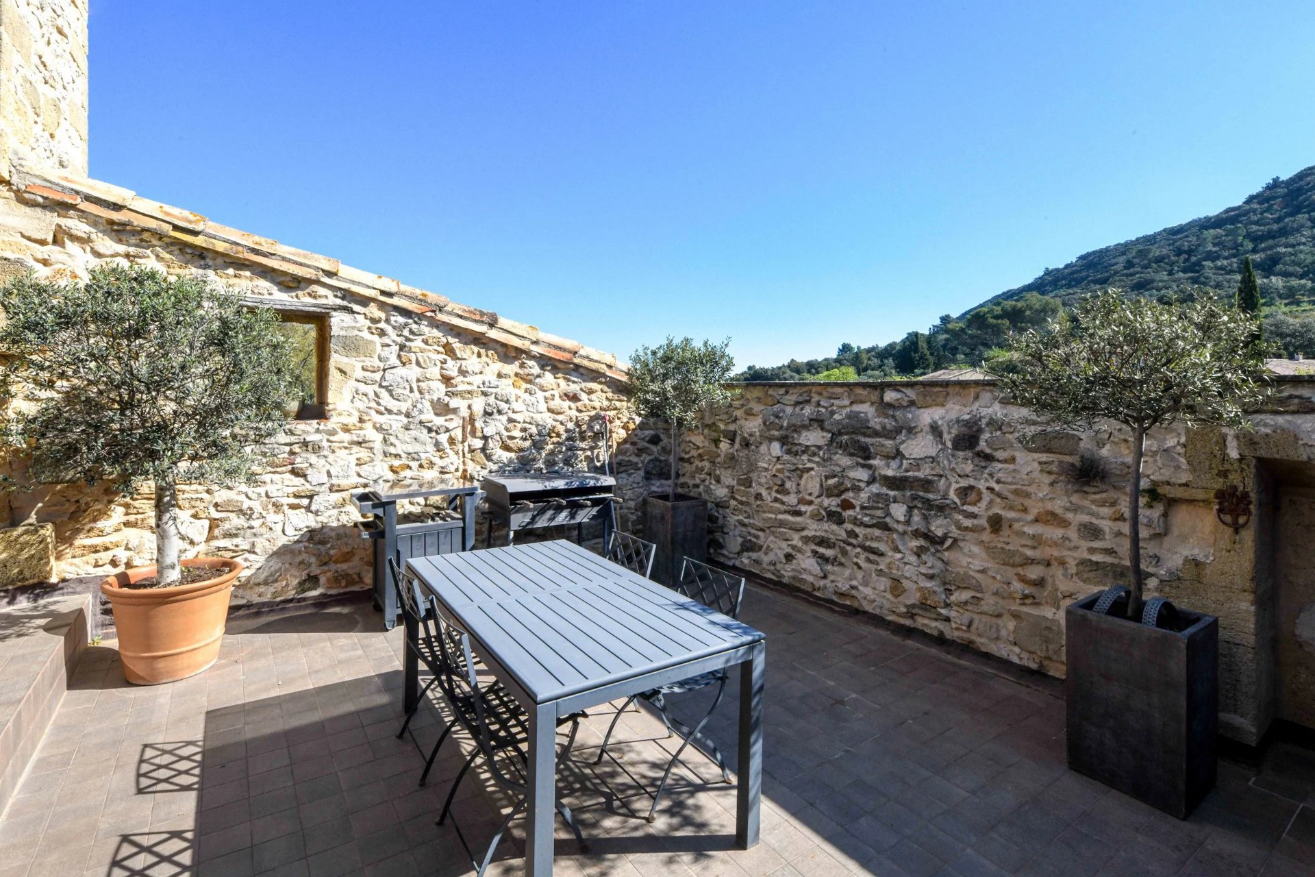 Une terrasse intime donne accès à une troisième chambre indépendante.