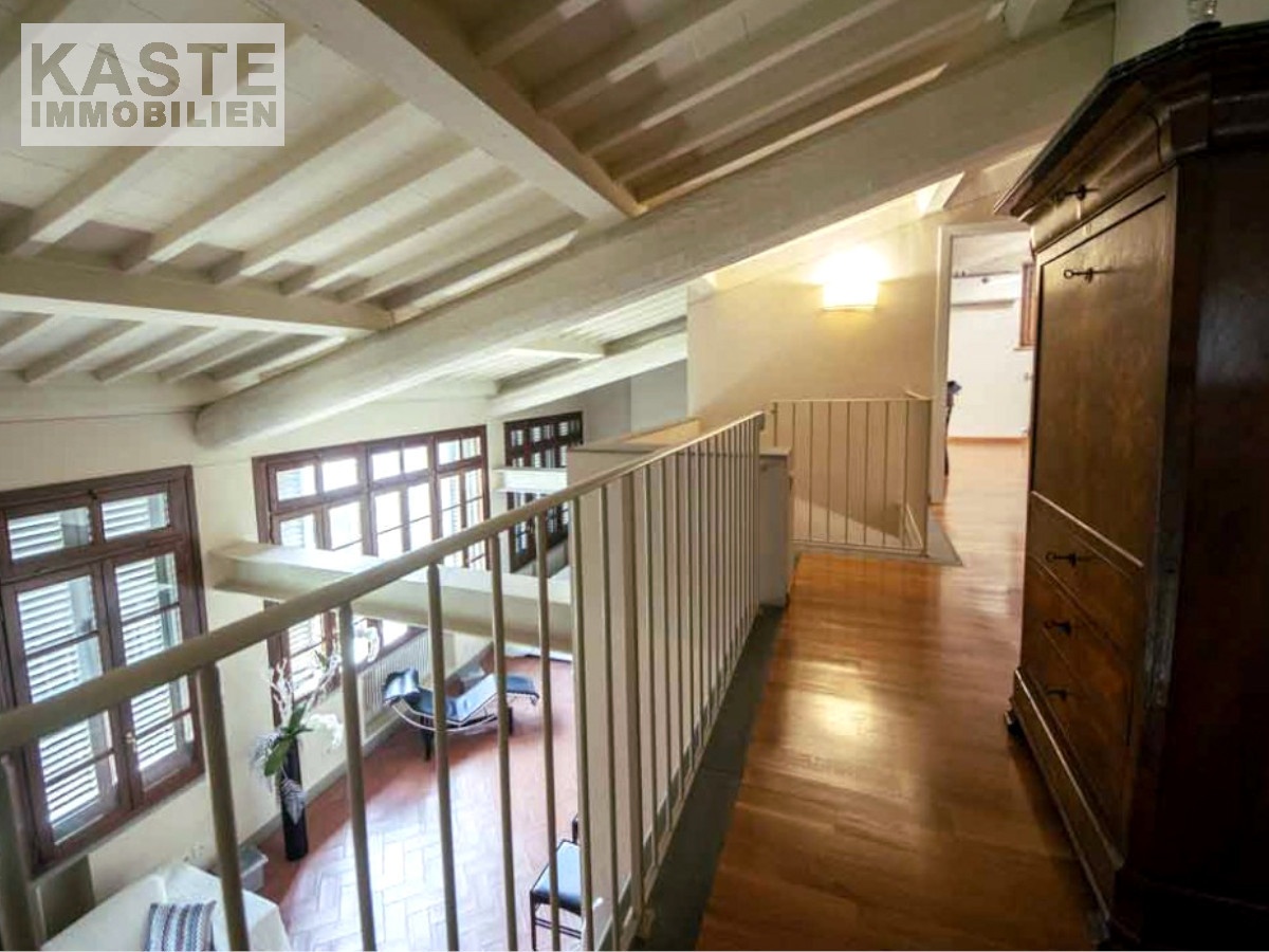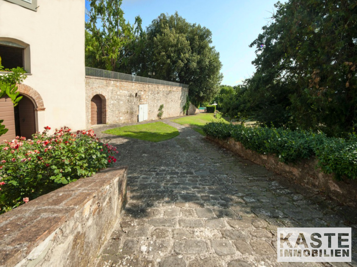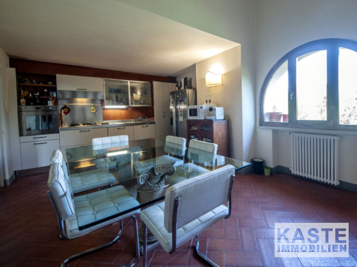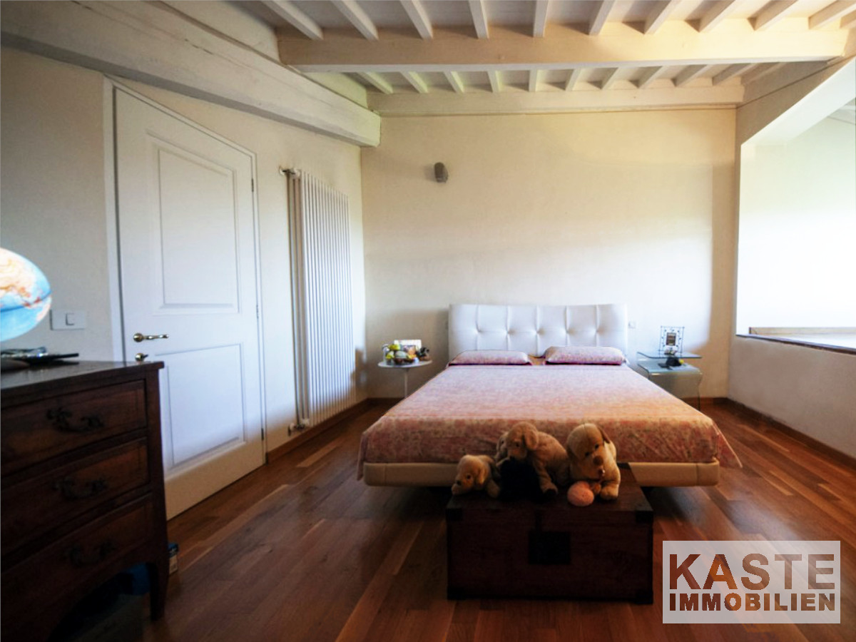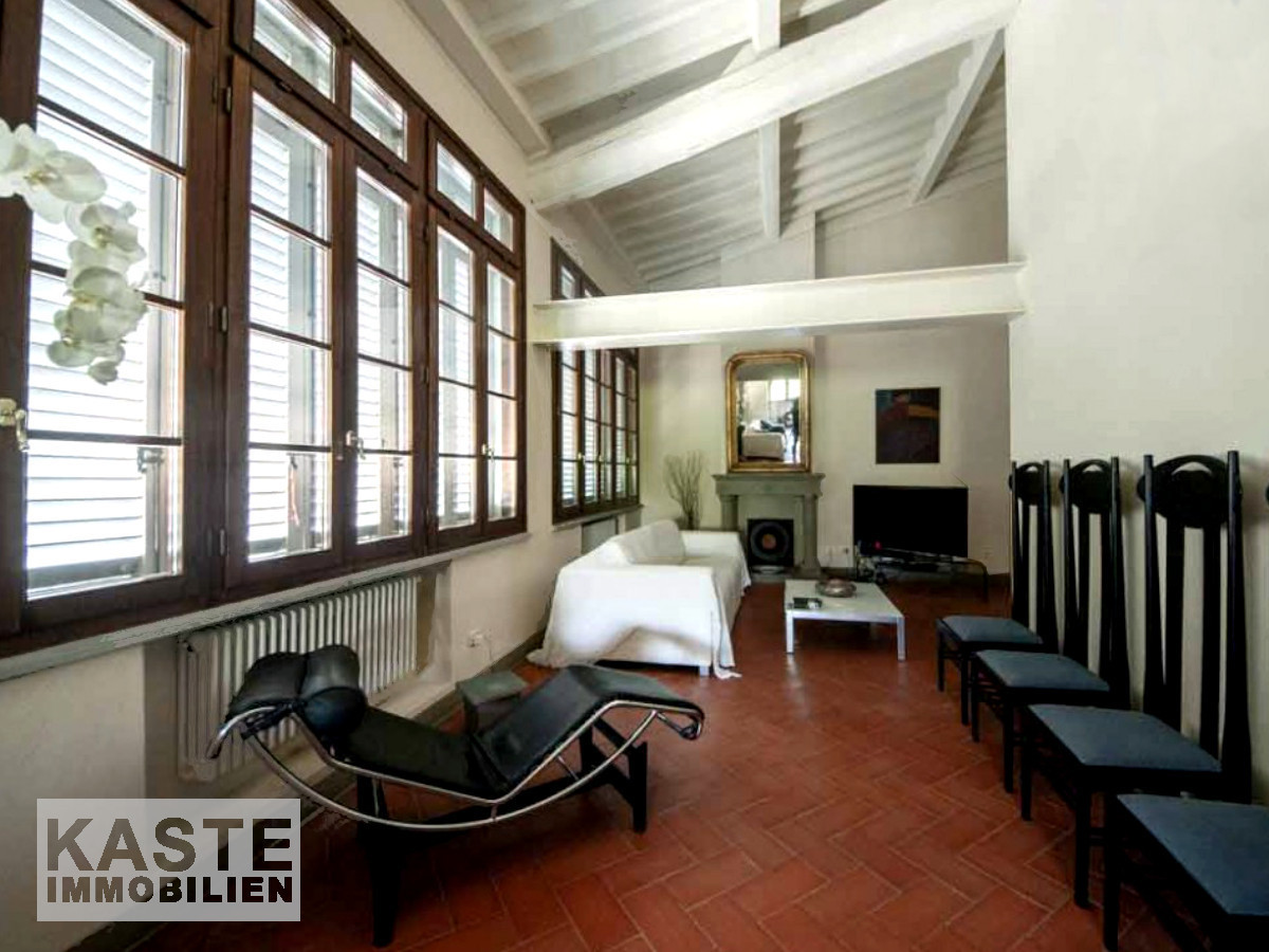Das Luxus-Apartment befindet sich in der majestätischen Villa Montecchio, einem ehemaligen Kloster aus dem Jahr 1100 nach Christus. Das Apartment in toskanischem Stil befindet sich im zweiten Stock, der mit einem Aufzug erreichbar ist. Es hat ein 60 qm großes Wohnzimmer, eine 25 qm große Küche, ein Badezimmer mit Waschmaschine und Trockner und einen Hauswirtschaftsraum. Im Obergeschoss des Apartments befinden sich zwei Schlafzimmer und ein weiteres Badezimmer. Zum Eigentum gehört außerdem ein 6 qm großer Kellerraum.