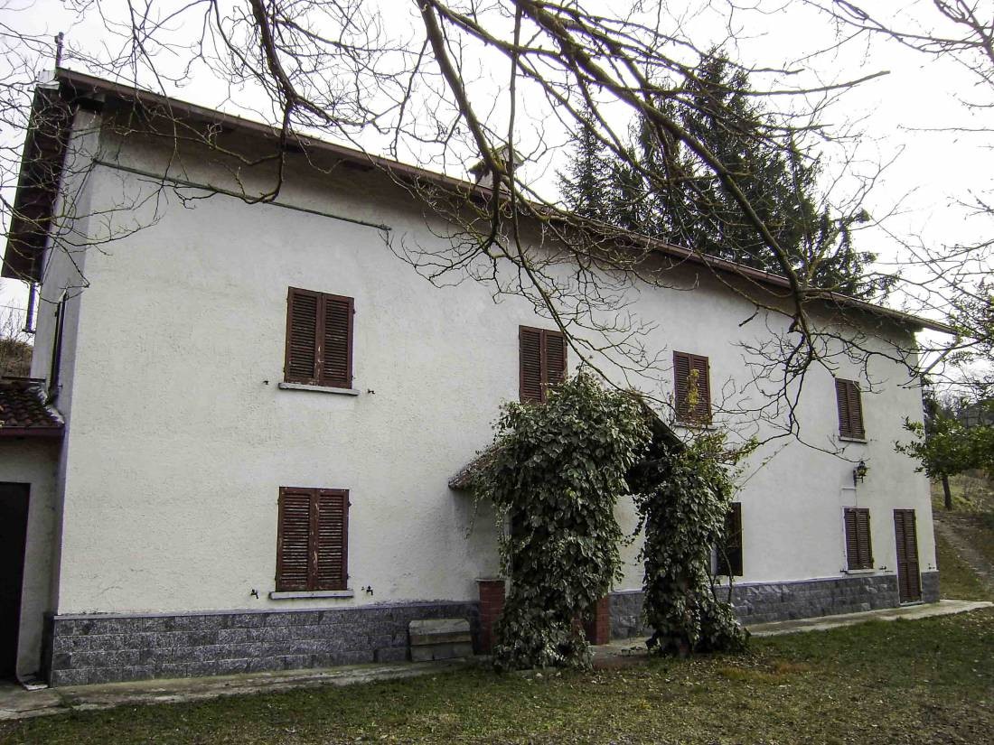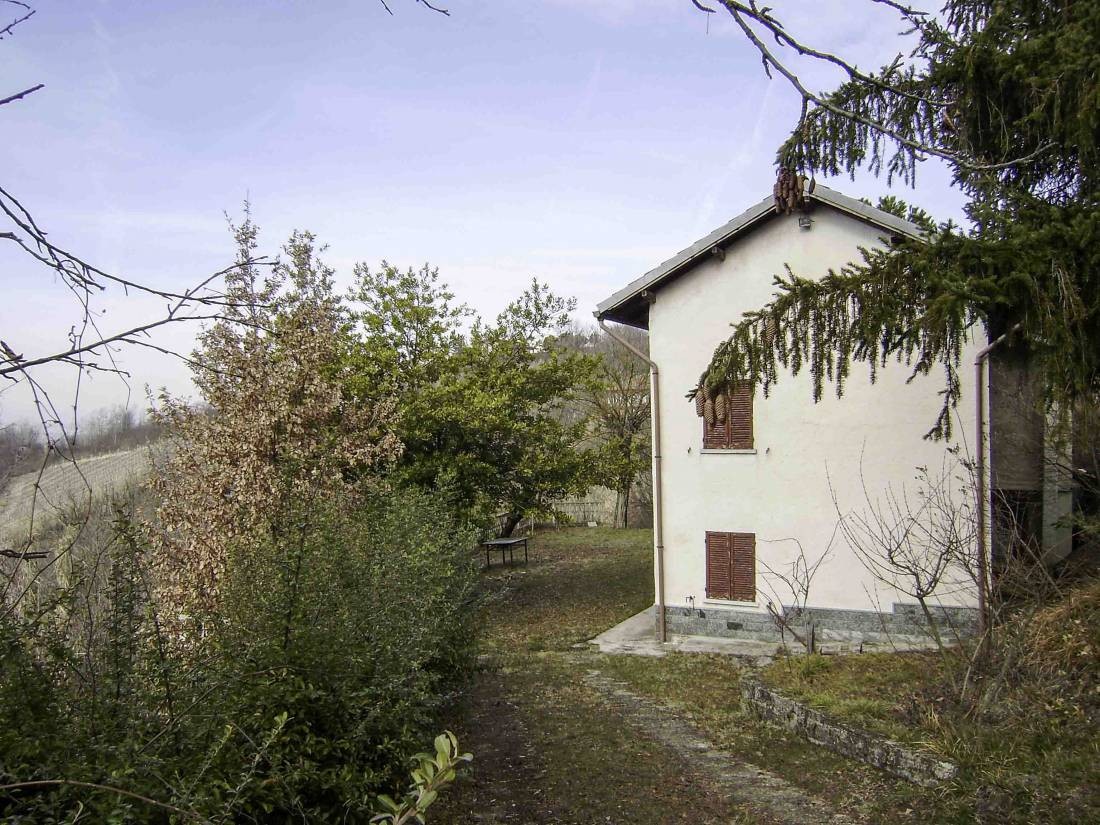 In panoramic position on a ridge of hills high above a valley is the double-storey house. It is facing south-west, very sunny and quiet. The property with private driveway and gate can be easily reached via an asphalted residential road. Canelli is about seven kilometers away. There is a small shop, bar, restaurant, etc. 3 km away.