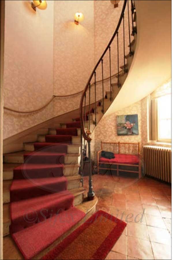 Ground floor: octagonal Entrance hall; small and large Salons; Study in a tower; Dining room; Kitchen; Bedroom with bathroom; WC.