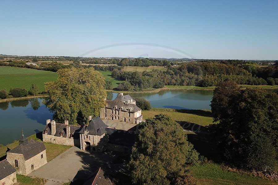 Charismatic Chateau for sale dating from the 14/16 and 17th centuries, overlooking its 4 hectare lake and set in 22 hectares of grounds planted with numerous magnificent ornamental trees, on the outskirts of a town with all main shops and services, just 30 kms from Mont-Saint-Michel and 30 kms from the TGV at Rennes. The nearest autoroute exit ( A84) is 3 kms away. This property has enormous charm and has undergone a restoration project of high quality up to 2009. It is in extremely good condition and has approximately 720m2 of living space which comprises;