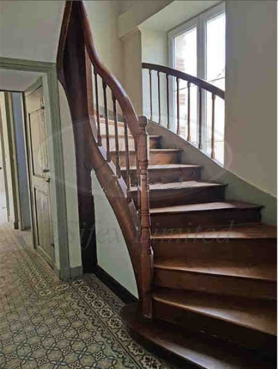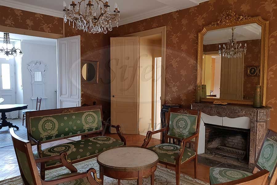 Entrance hall, Salon with oak parquet floor, moulded ceiling and 19th C. marble fireplace, Dining room with parquet floor and marble fireplace. Kitchen to be fitted out, Bedroom with shower room en-suite, Hallway with oak staircase to the first floor, W.C. and boiler room.