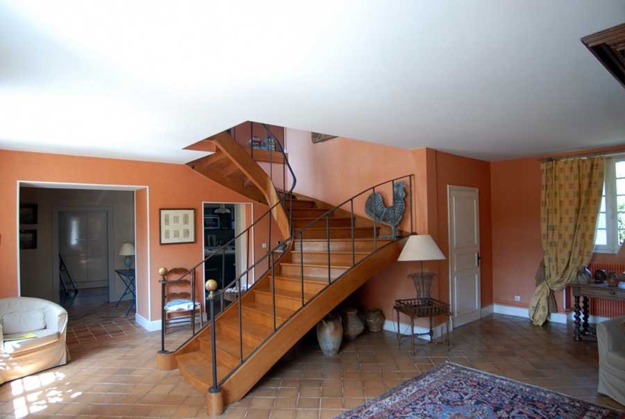 Ground Floor: Entrance hall, 38m², with fine staircase leading upstairs and terra cotta floor tiles, smokehouse, 5.8m x 6.8m, with grand 15th century fireplace and......
