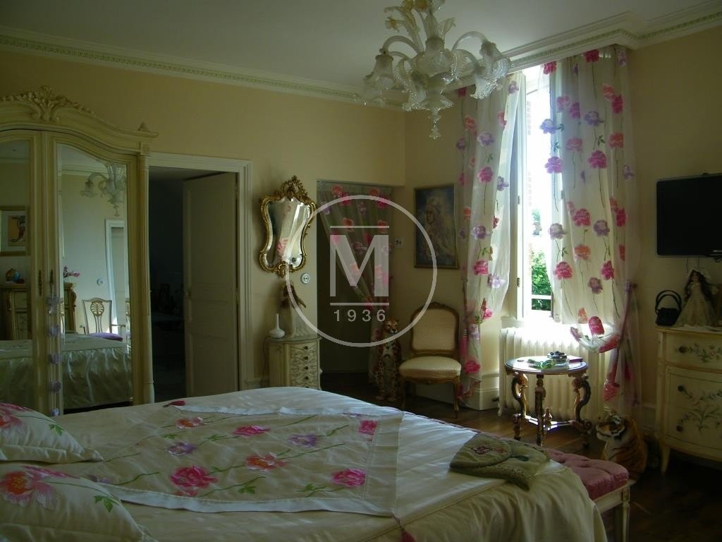 Château entièrement rénové de 521 m² avec jardin à la française en façade et jardin à l'anglaise de 3615 m² sur l'arrière. Ancienne écurie du XVIIe formant l'aile donnant sur terrasse avec piscine chauffée et spa. Diverses dépendances dont garages 2 véhicules, et bâtiment pour stockage et serre. 9 pièces dont 3 chambres, 2 salles de bains, 2 salles d'eau. Ascenseur. Lingerie. Cave voûtée.