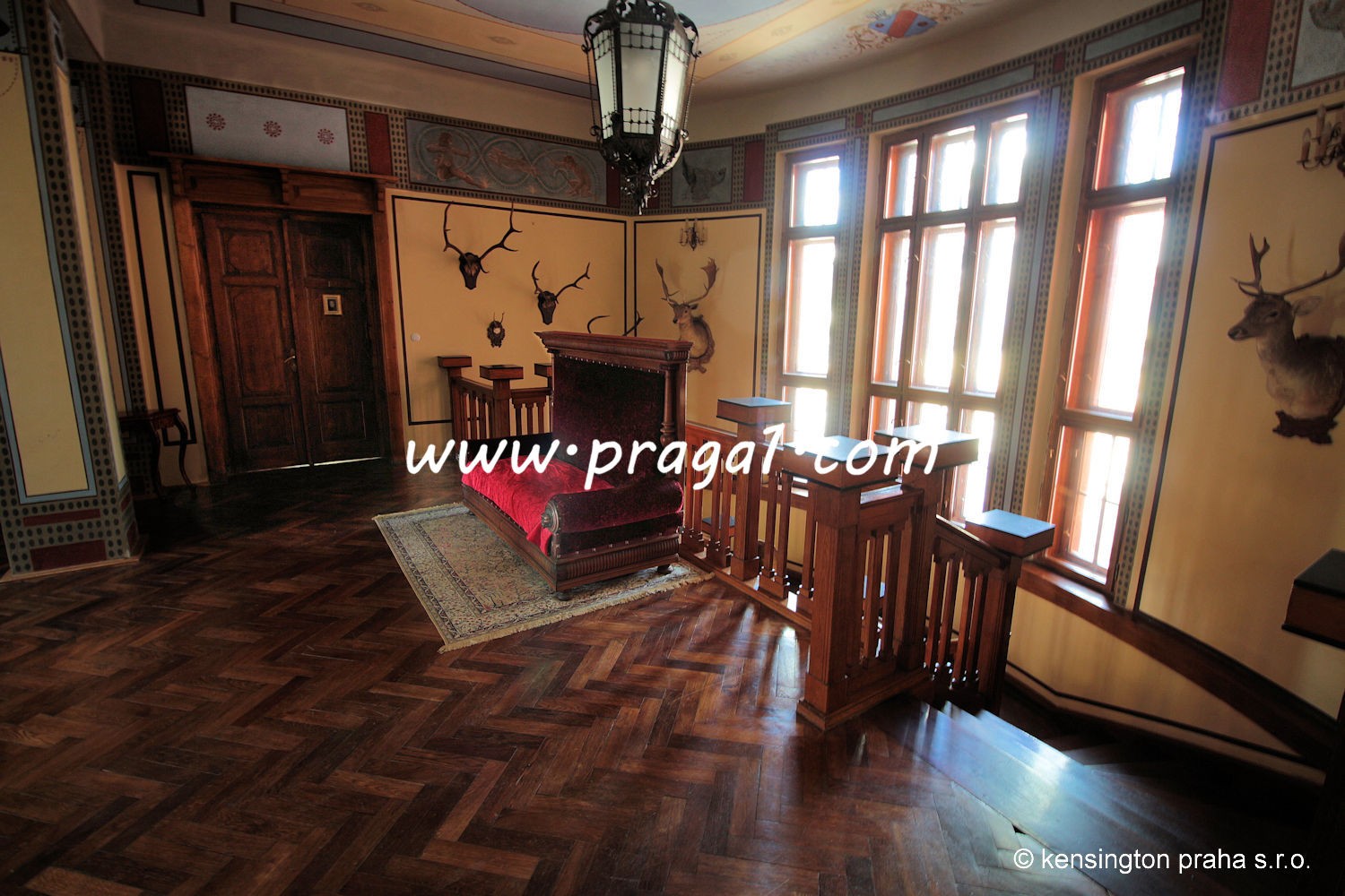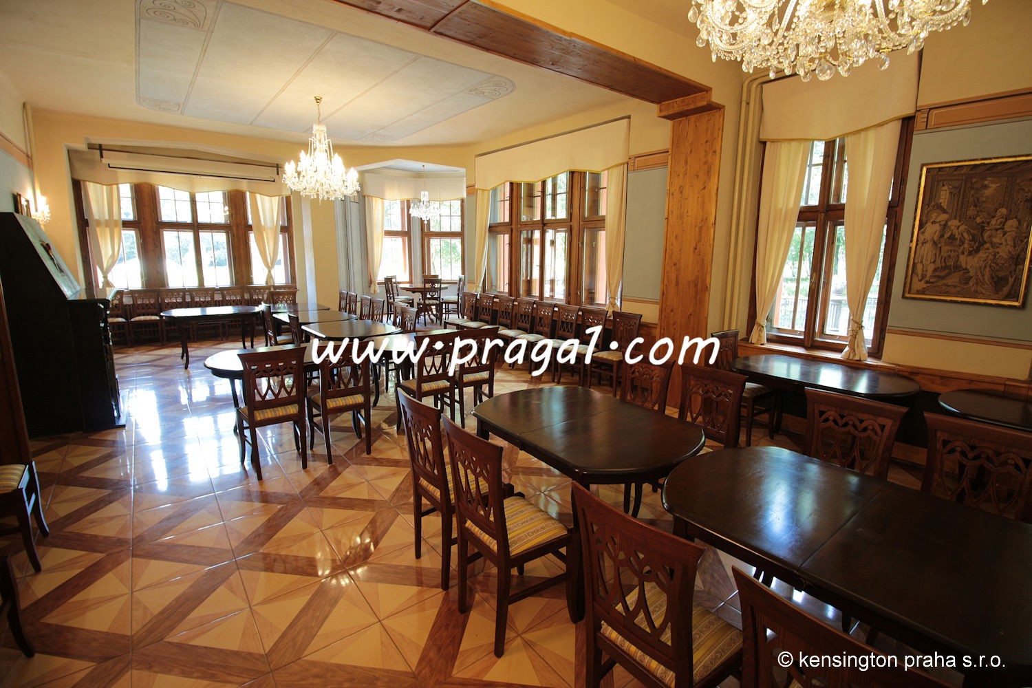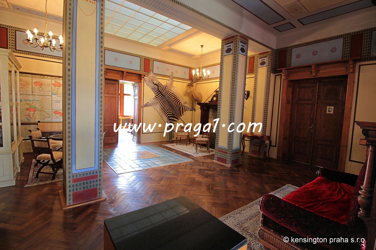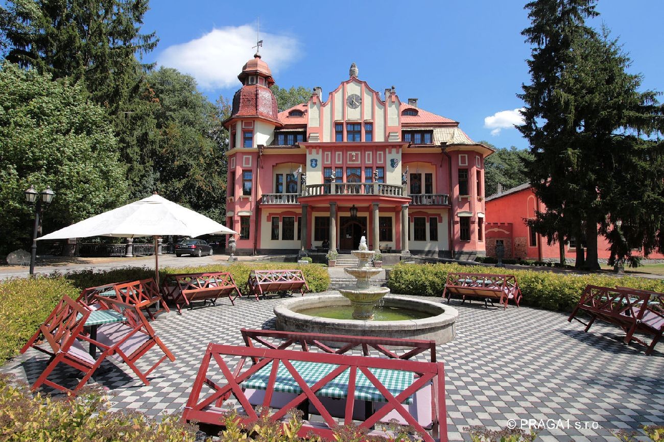 Chateau built in art nouveau style in 19th century in South Bohemia. The property stands right in the middle of a large park. Ideal as a prestigious private residence. There is absolute privacy, picturesque nature, private deer park, three lakes etc. The main building has been fully refurbished, it is being used for various social occasions. There are 11 bedrooms with bathrooms, large entrance hall, bar, two dining rooms used as restaurant, kitchen. There are several additional auxilliary building used as staff apartments, offices, garage and technical use.