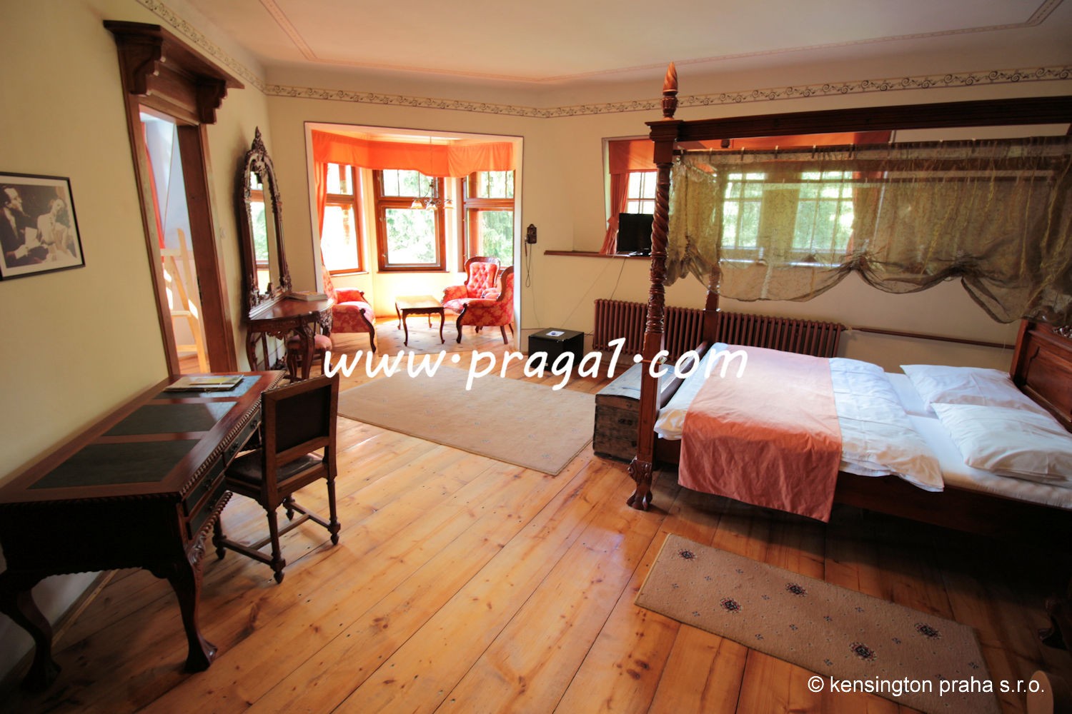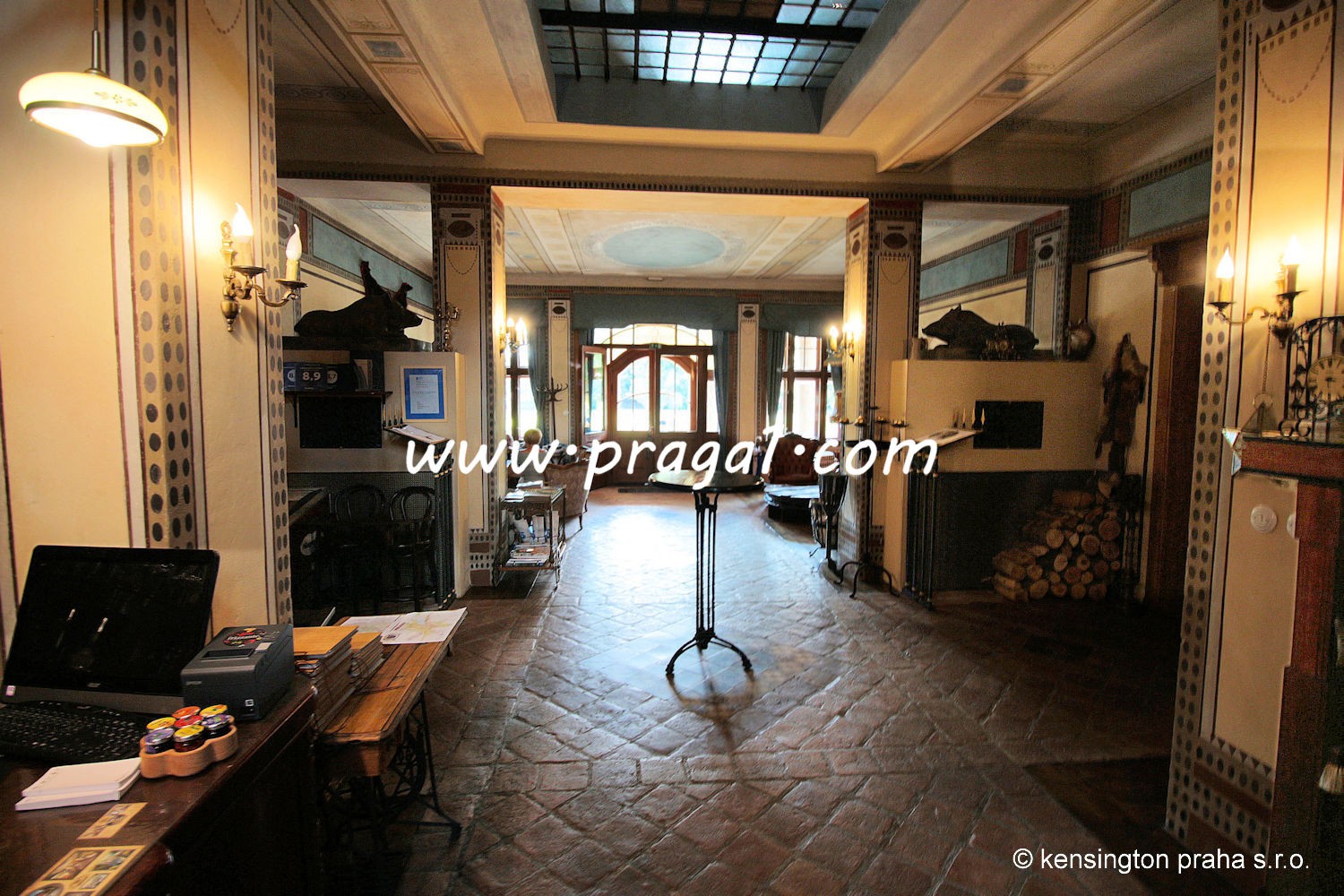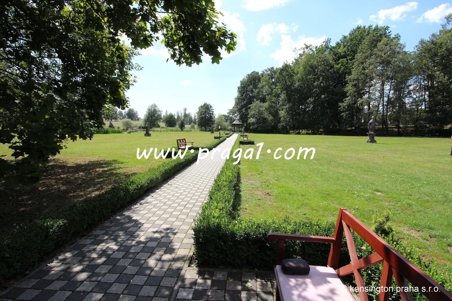 Chateau built in art nouveau style in 19th century in South Bohemia. The property stands right in the middle of a large park. Ideal as a prestigious private residence. There is absolute privacy, picturesque nature, private deer park, three lakes etc. The main building has been fully refurbished, it is being used for various social occasions. There are 11 bedrooms with bathrooms, large entrance hall, bar, two dining rooms used as restaurant, kitchen. There are several additional auxilliary building used as staff apartments, offices, garage and technical use.